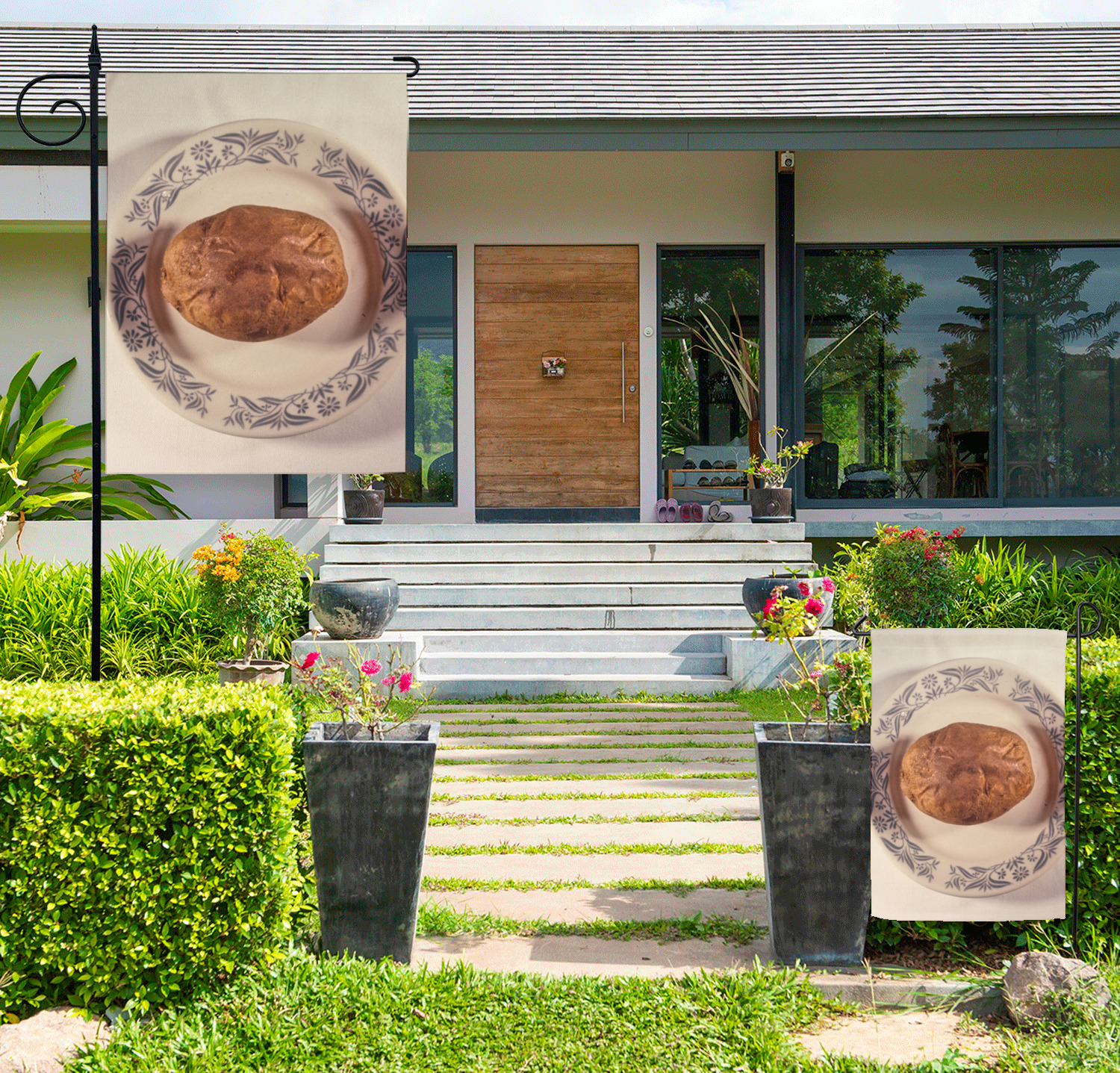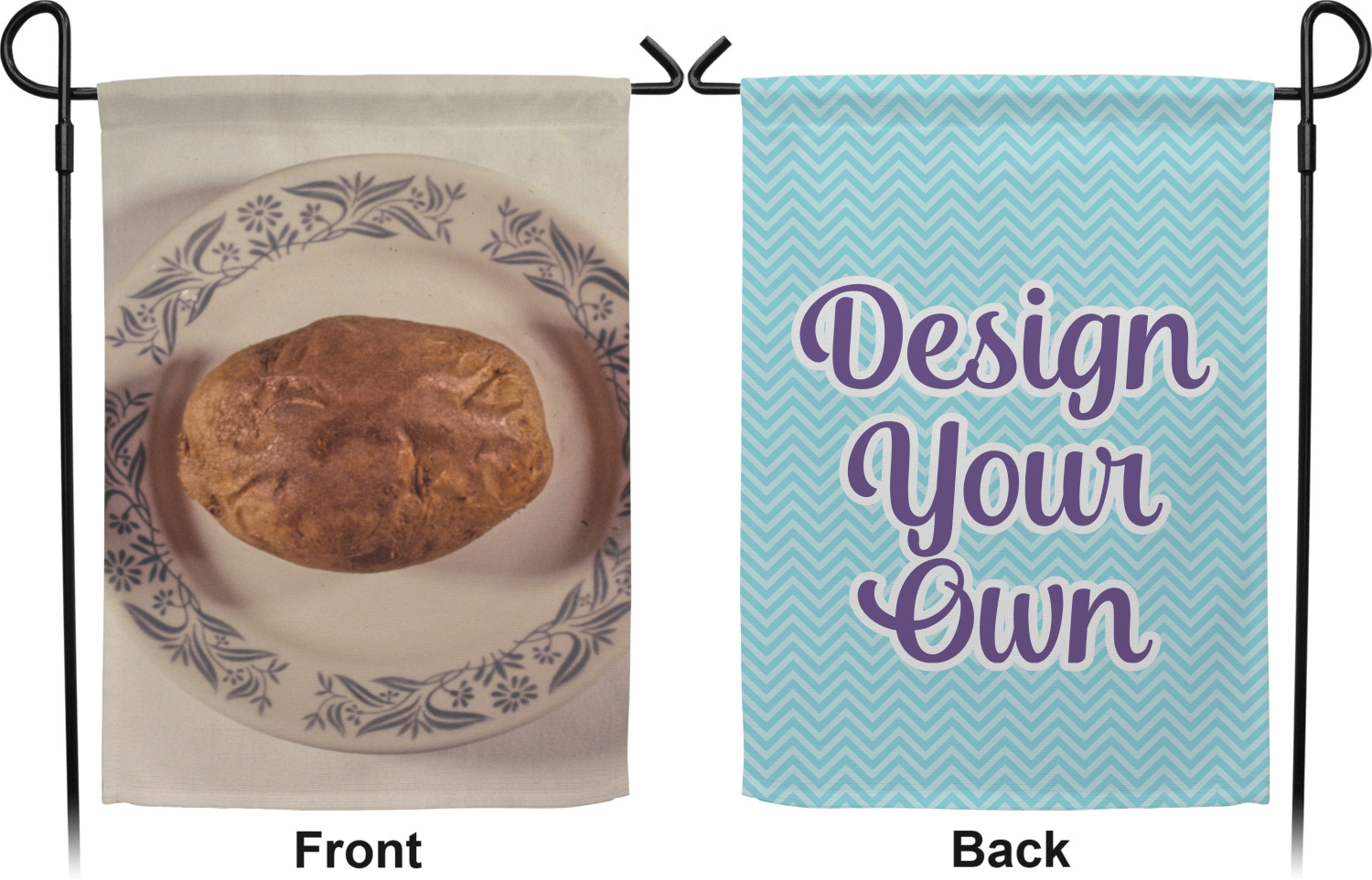 These custom garden flags are made of a durable, double-ply, polyester weave, allowing them to withstand the elements year round. The small flags measure at approximately 12 by 18 inches. The large flags measure out to 28 by 37 inches. You can order these decorative flags with your customization printed on the front only, or the front and back.