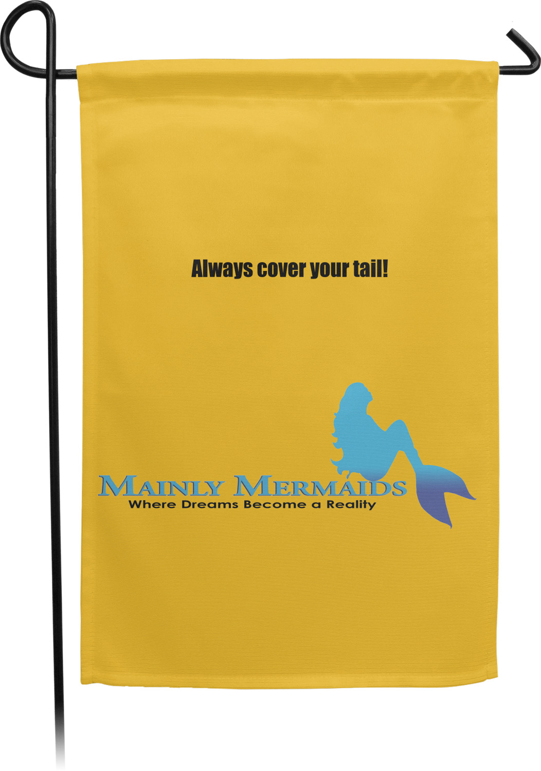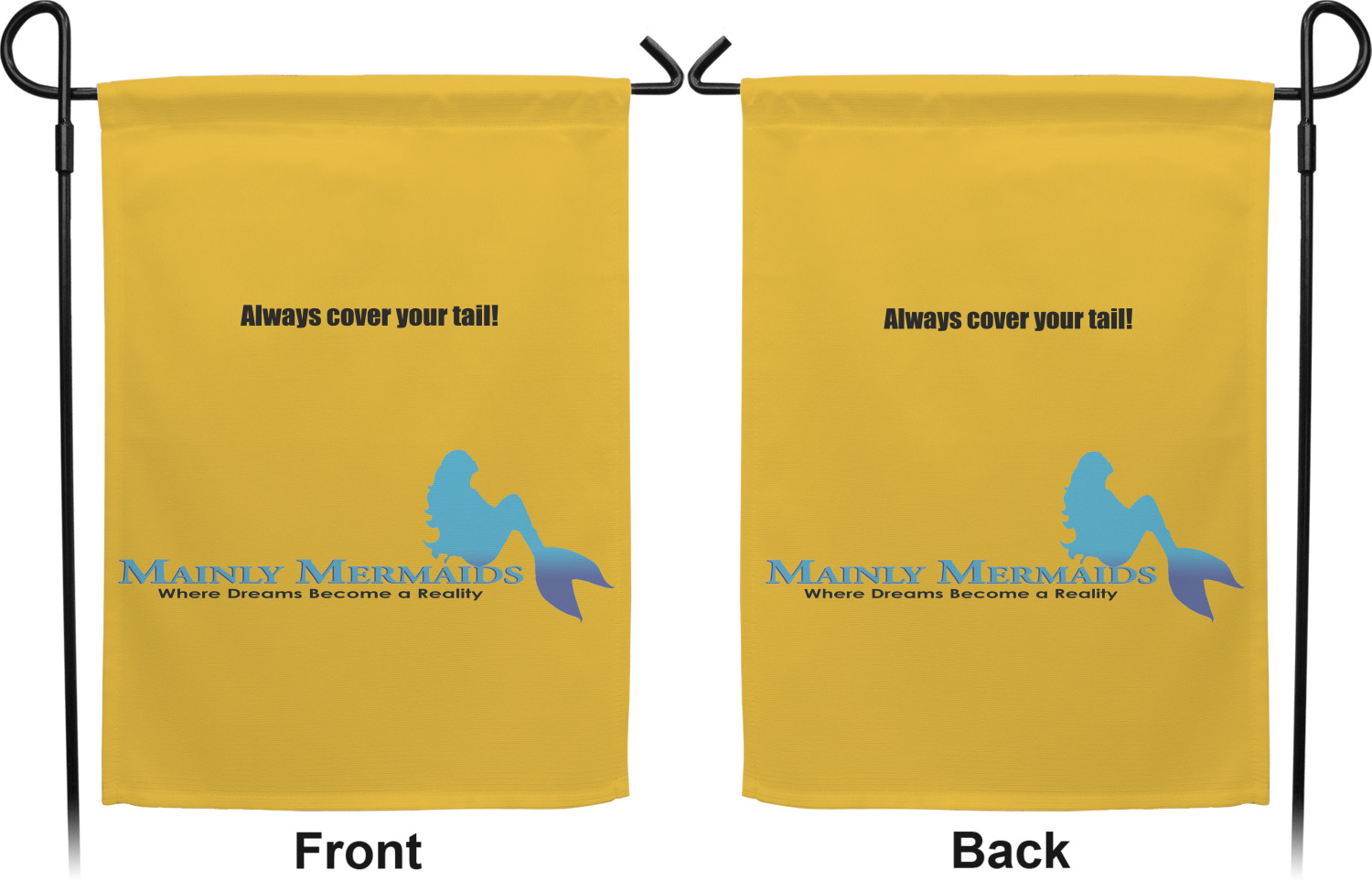 These custom garden flags are made of a durable, double-ply, polyester weave, allowing them to withstand the elements year round. The small flags measure at approximately 12 by 18 inches. The large flags measure out to 28 by 37 inches. You can order these decorative flags with your customization printed on the front only, or the front and back.