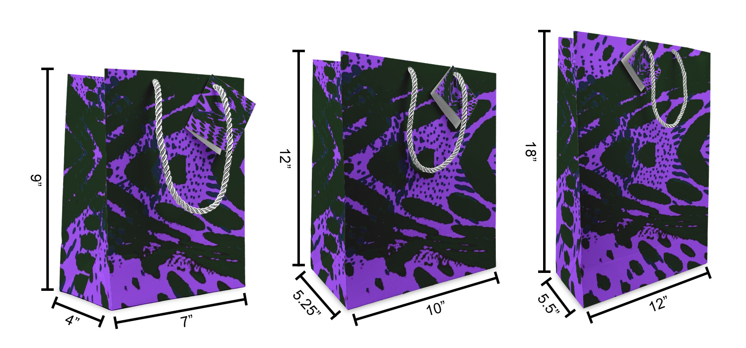 These custom gift bags come in your choice of 3 sizes. Their dimensions are below: