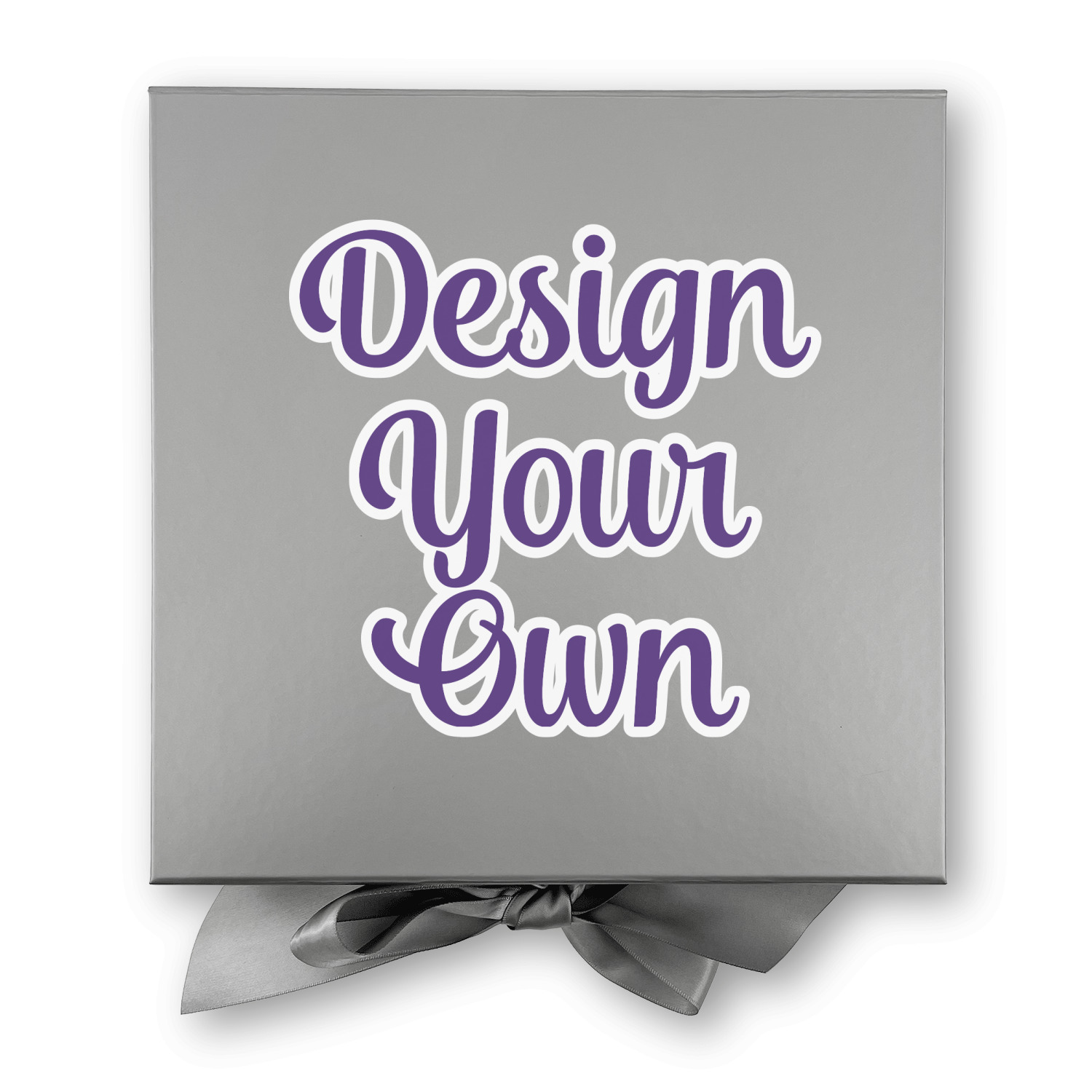 Design your own using our design library and we will print your artwork onto the lid of the gift box. When the box is closed the ribbons can be tied to secure the lid and add to the elegant look of these gift boxes.