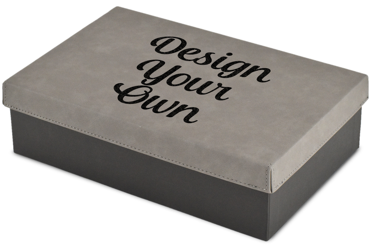 These gift boxes are available in 3 different sizes to accommodate various sized gifts. Available in gray as a neutral color for any occasion as well as to showcase your design boldly. Engraved with a laser this high quality paper board and faux leather gift box is unique and makes any gift stand out.