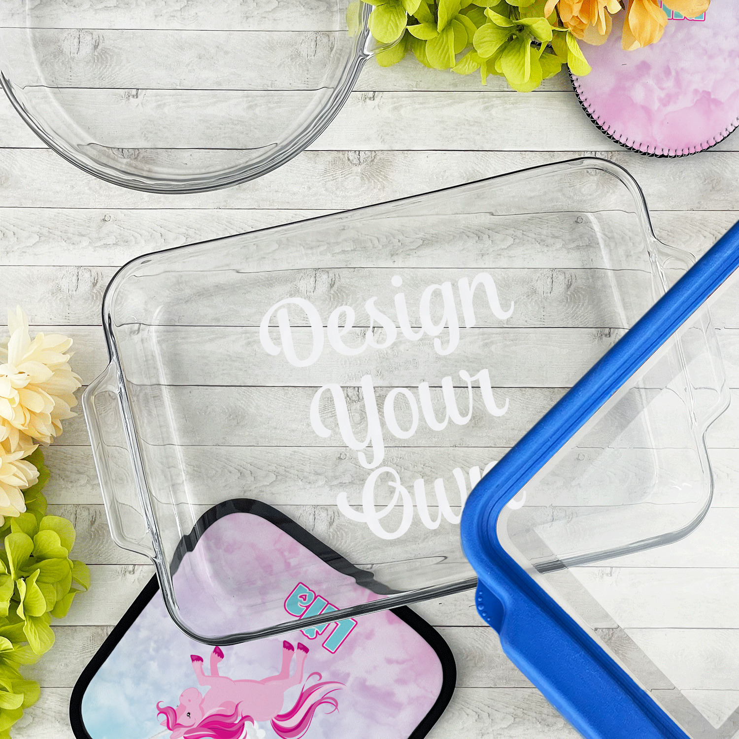 Tired of figuring out which dish is yours at a pot luck function? These personalized baking and cake dishes will make that a thing of the past by clearly showing your customization and no longer will someone else mistake your dish for their own.