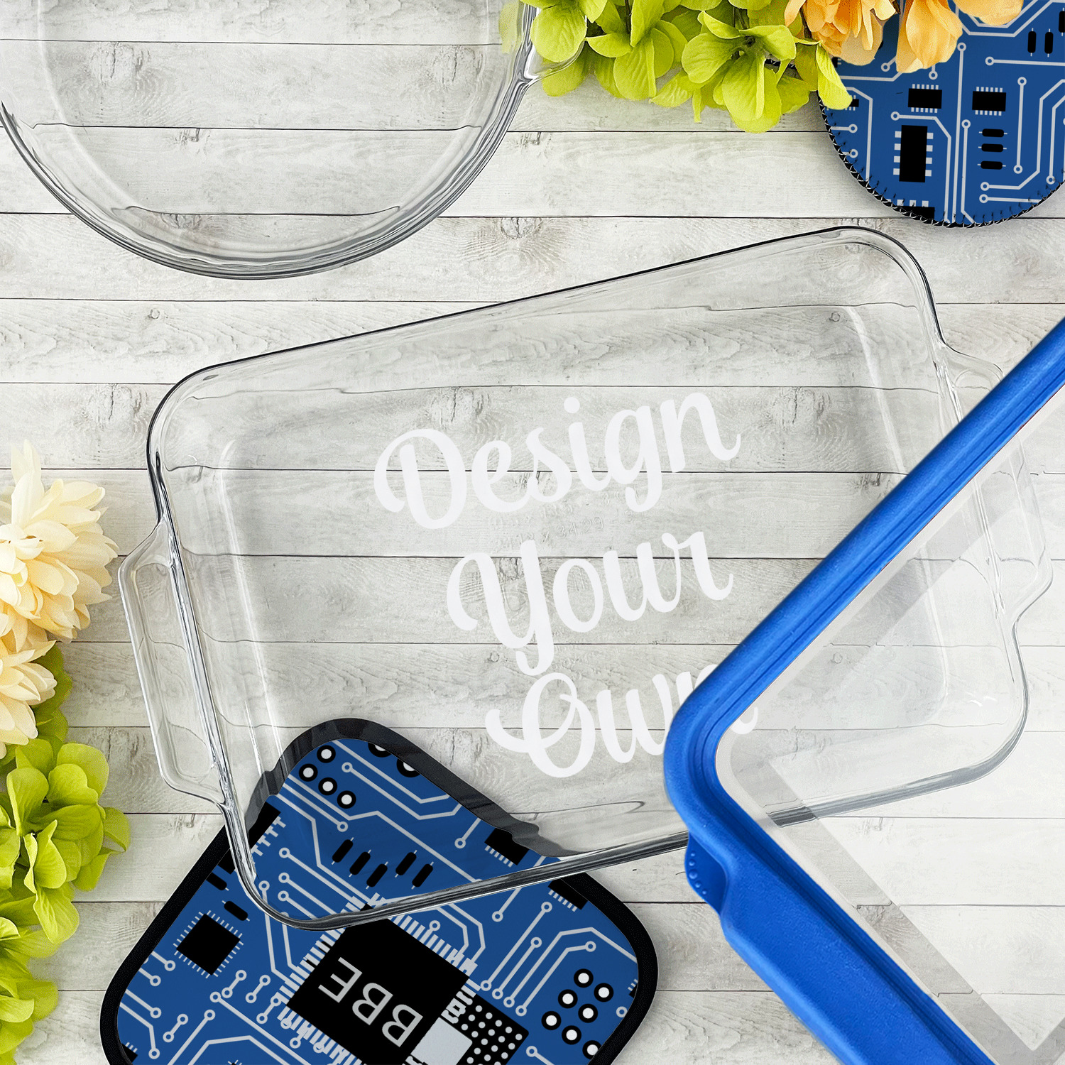 Tired of figuring out which dish is yours at a pot luck function? These personalized baking and cake dishes will make that a thing of the past by clearly showing your customization and no longer will someone else mistake your dish for their own.