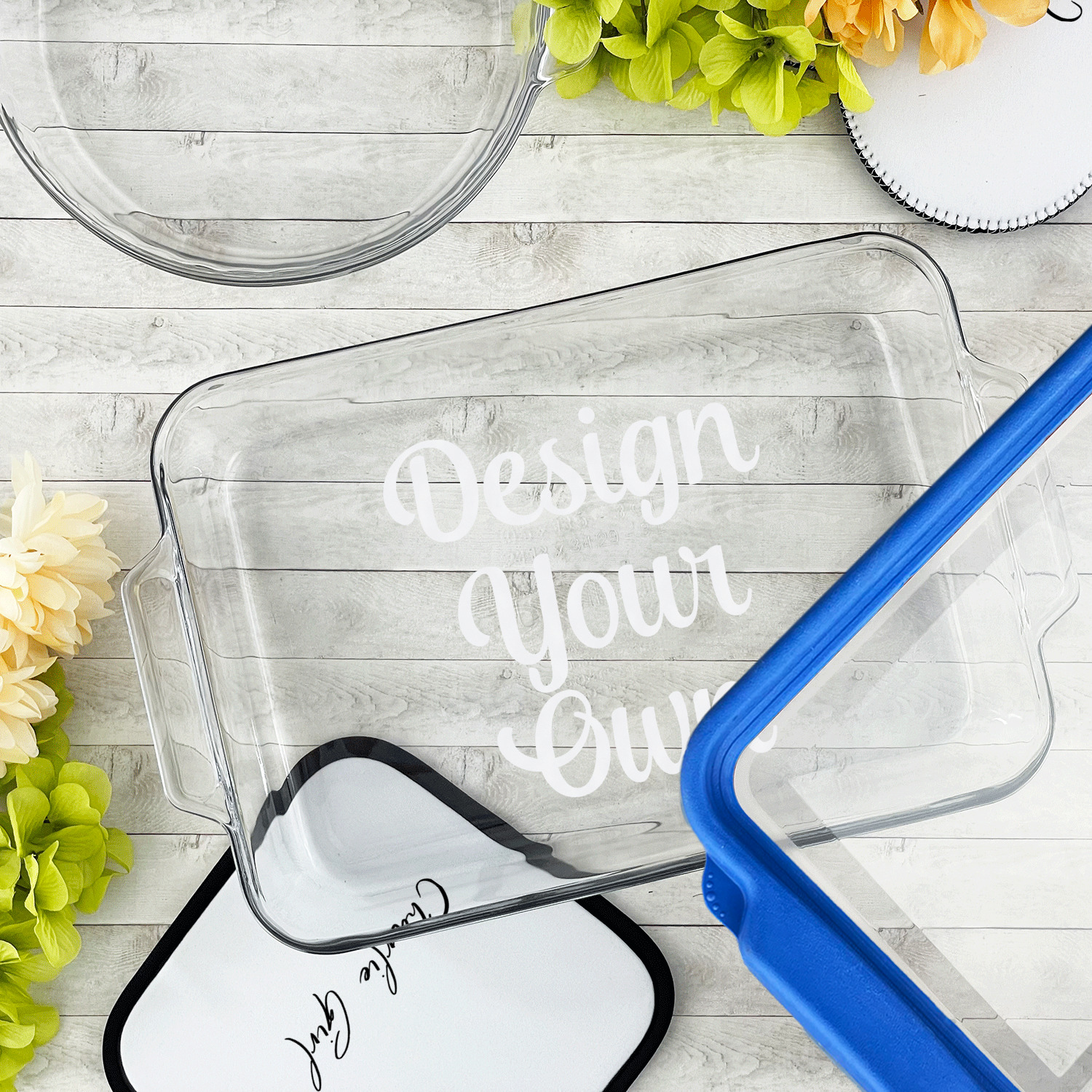 Tired of figuring out which dish is yours at a pot luck function? These personalized baking and cake dishes will make that a thing of the past by clearly showing your customization and no longer will someone else mistake your dish for their own.