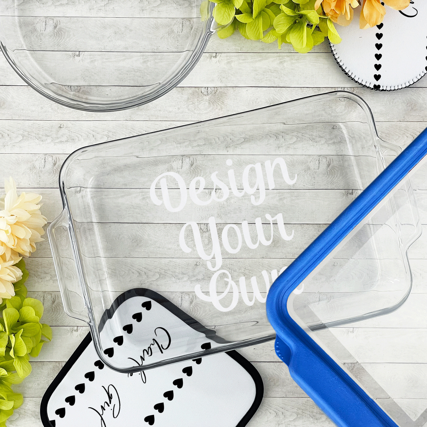 Tired of figuring out which dish is yours at a pot luck function? These personalized baking and cake dishes will make that a thing of the past by clearly showing your customization and no longer will someone else mistake your dish for their own.