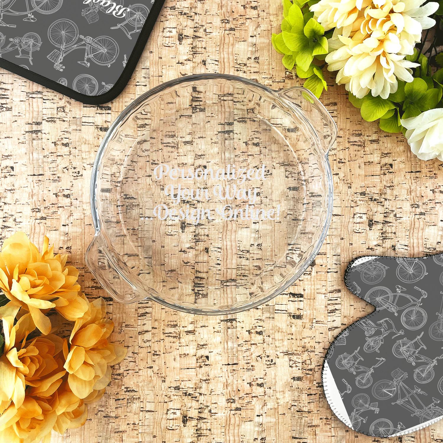 Use our design studio to design your very own pie plate which we will then laser engrave onto the bottom of the pie plate for you. Next time you take this pie plate to a pot luck no-one else will be able to claim it as theirs when its customized just for you!