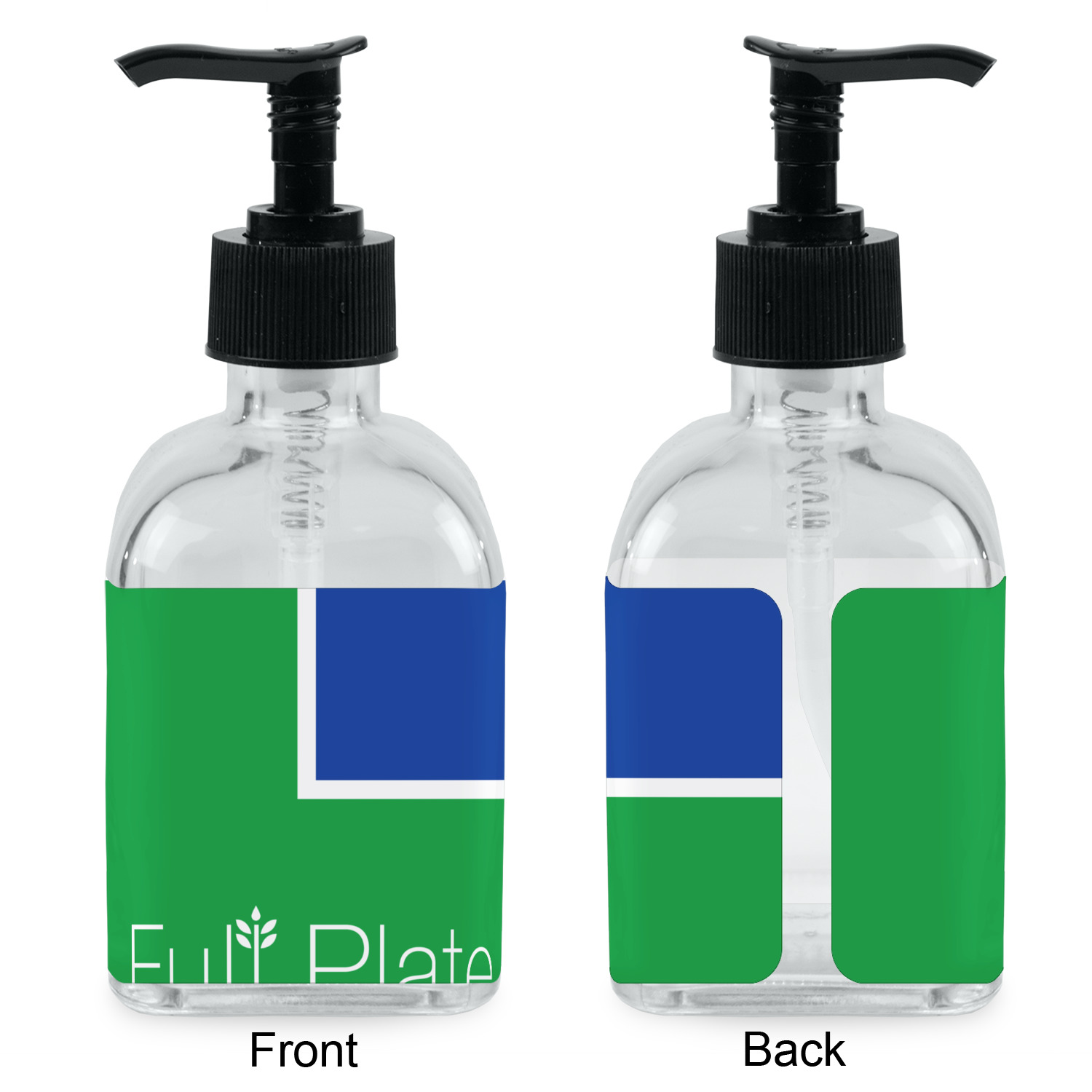 Crafted from a high-quality glass, these soap dispensers and lotion dispensers are durable and robust, while still looking elegant. They are sold with black pumps. Each soap dispenser pump measures at 6.5 by 2.25 inches. On these soap pumps, we display your customized design on a personalized vinyl adhesive on three sides. That way, you can judge how much liquid is in the bottles from the back.