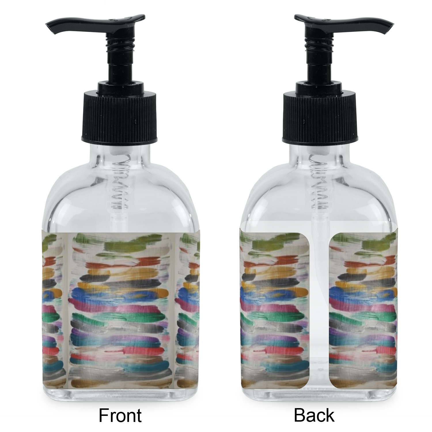 Crafted from a high-quality glass, these soap dispensers and lotion dispensers are durable and robust, while still looking elegant. They are sold with black pumps. Each soap dispenser pump measures at 6.5 by 2.25 inches. On these soap pumps, we display your customized design on a personalized vinyl adhesive on three sides. That way, you can judge how much liquid is in the bottles from the back.