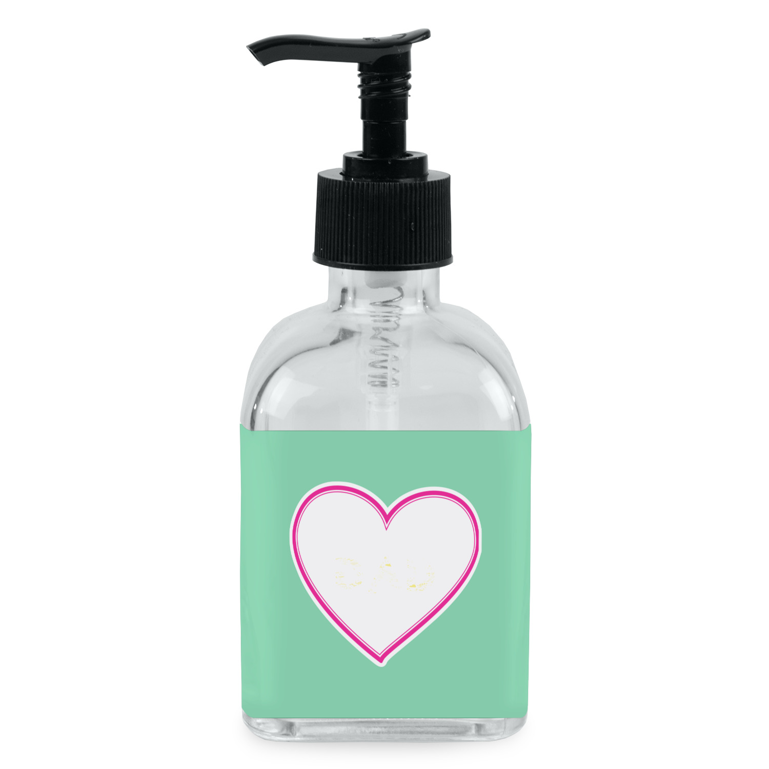 Crafted from a high-quality glass, these soap dispensers and lotion dispensers are durable and robust, while still looking elegant. They are sold with black pumps. Each soap dispenser pump measures at 6.5 by 2.25 inches. On these soap pumps, we display your customized design on a personalized vinyl adhesive on three sides. That way, you can judge how much liquid is in the bottles from the back.