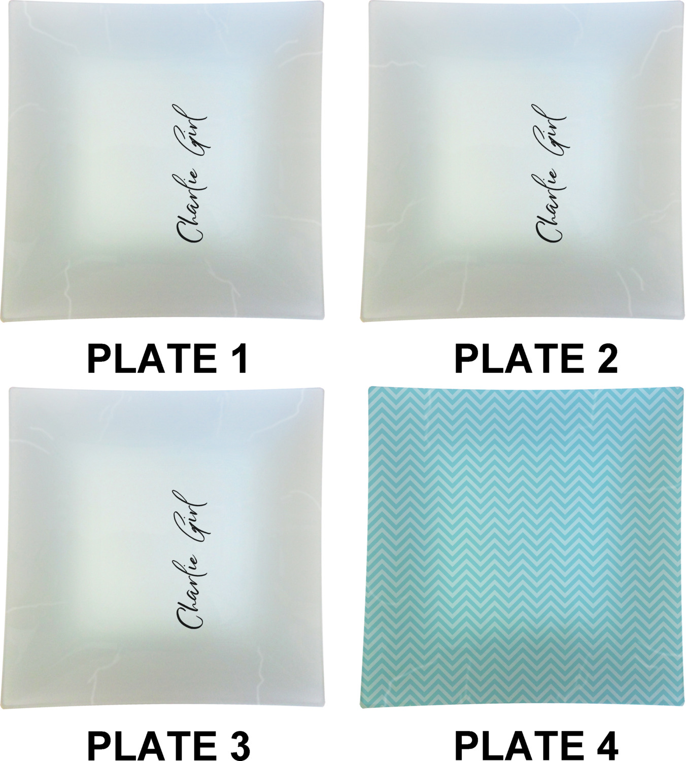 LOVE this square plate? Buy it in a set of 4! If you're hooked on glass, but tired of the traditional round shape, look through our whole glass plate collection; we have many shapes and sizes to choose from, available to buy in sets and as singles!