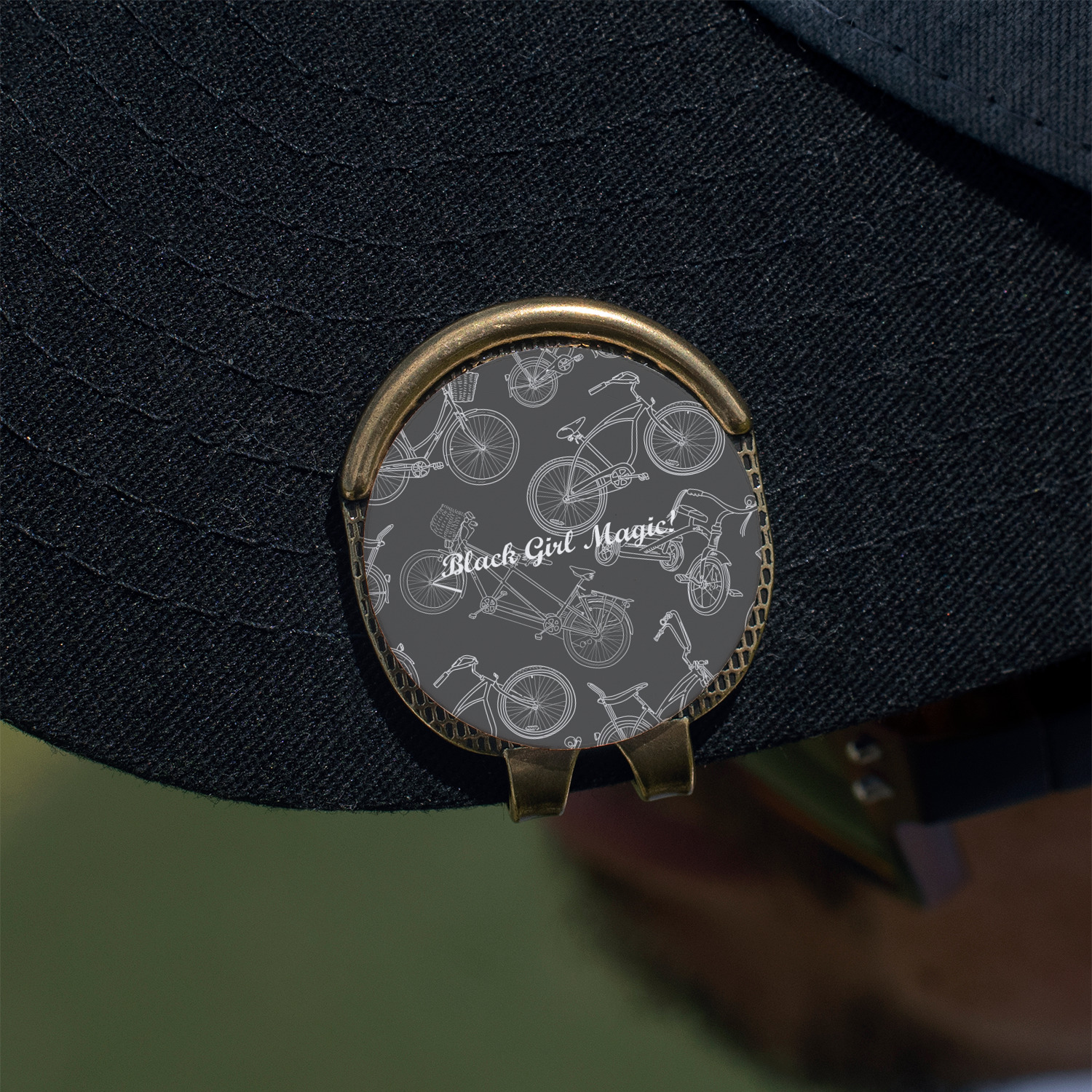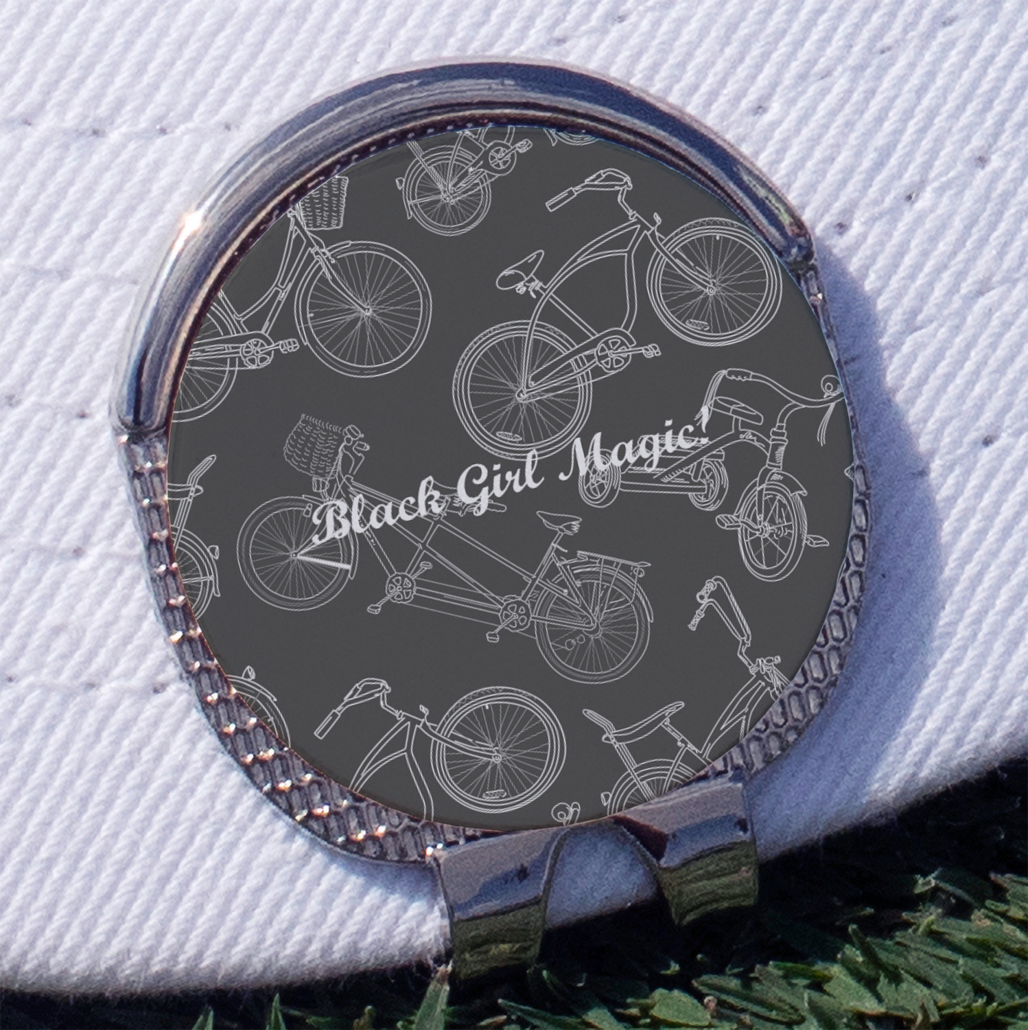 This round shaped little clip is simply 1.25" x 1.5". A clip wraps around to the back of the ball marker holder in order to be able to clip it to the bill of your hat or even your belt. The metal ball marker attaches by a magnet on the clip. Available in stainless steel natural finish or gold finish, you are sure to find one to suit your style. This makes for convenient removal when you need to use it. No more digging in your bag or pockets trying to find it!