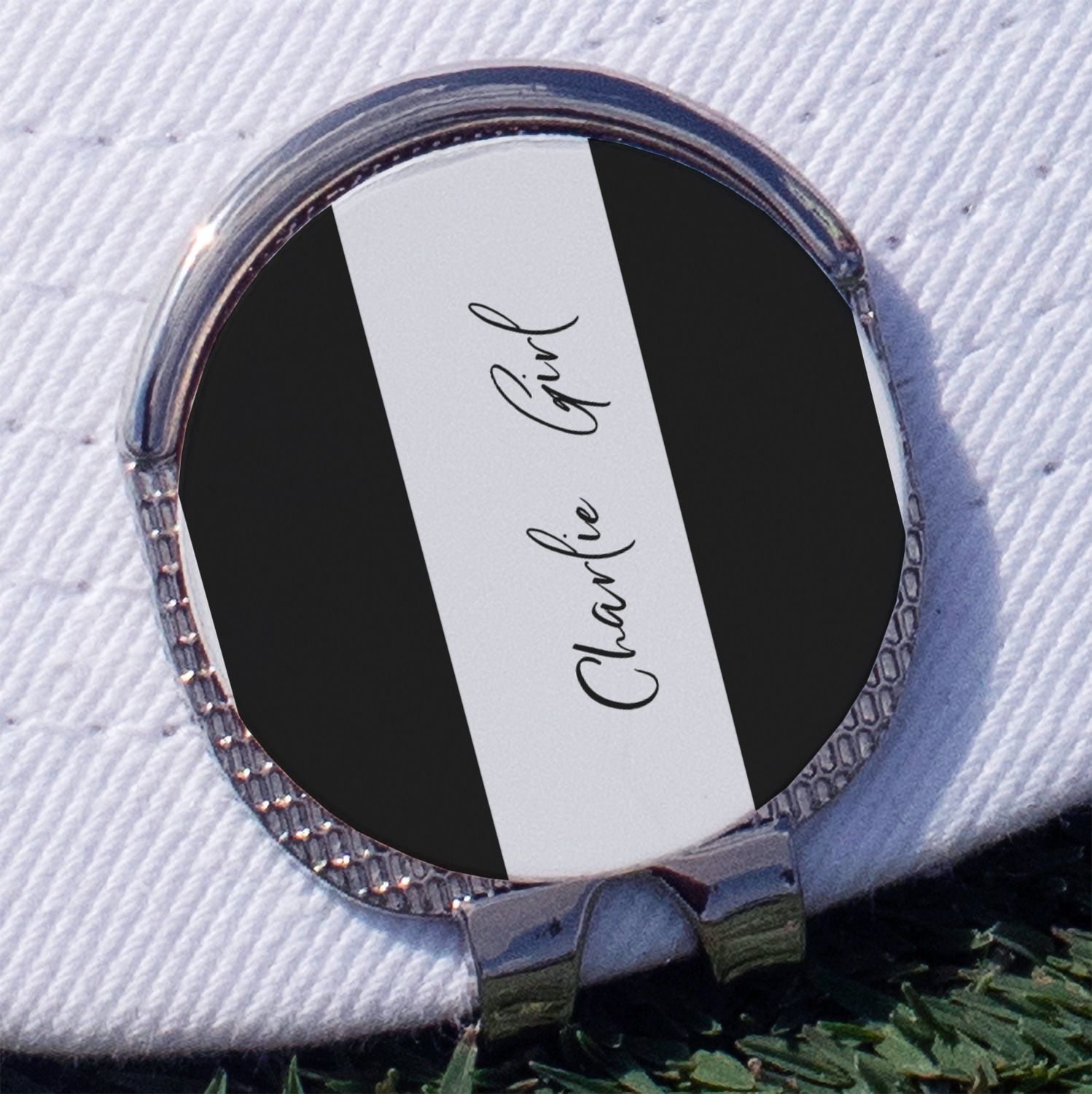 This little stainless steel ball marker clip is perfect for taking to the golf course. Add a little style to your hat by getting your clip personalized to your liking. You'll be so much more less likely to lose your ball marker with this handy clip.