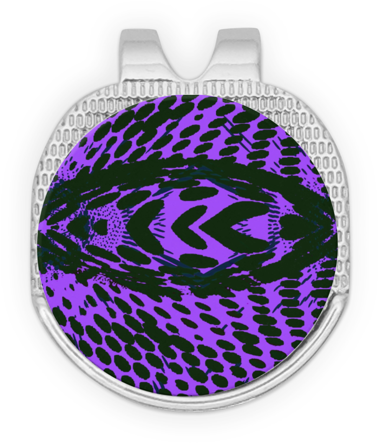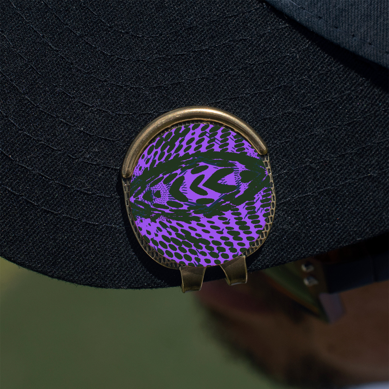 This round shaped little clip is simply 1.25" x 1.5". A clip wraps around to the back of the ball marker holder in order to be able to clip it to the bill of your hat or even your belt. The metal ball marker attaches by a magnet on the clip. Available in stainless steel natural finish or gold finish, you are sure to find one to suit your style. This makes for convenient removal when you need to use it. No more digging in your bag or pockets trying to find it!