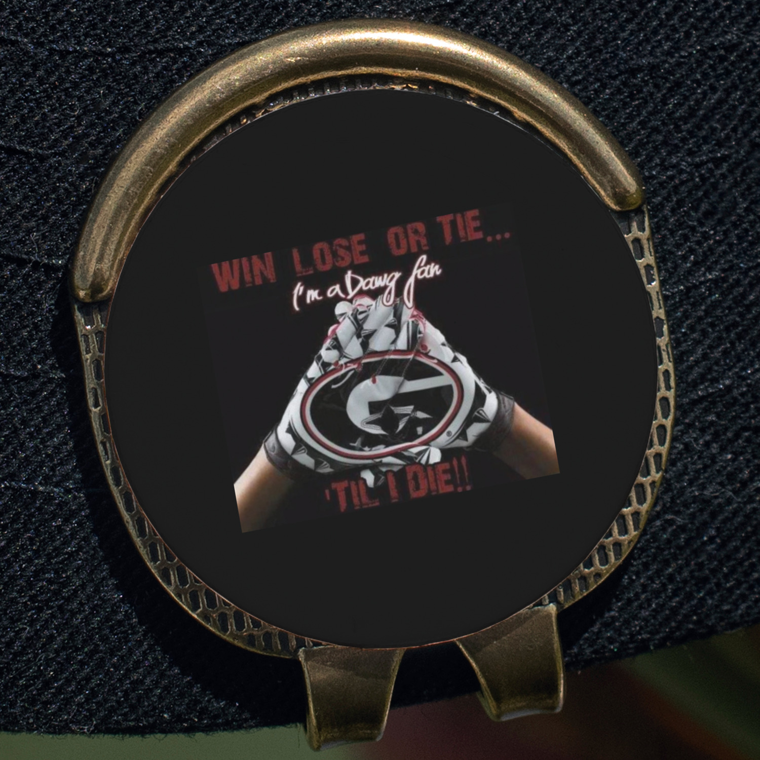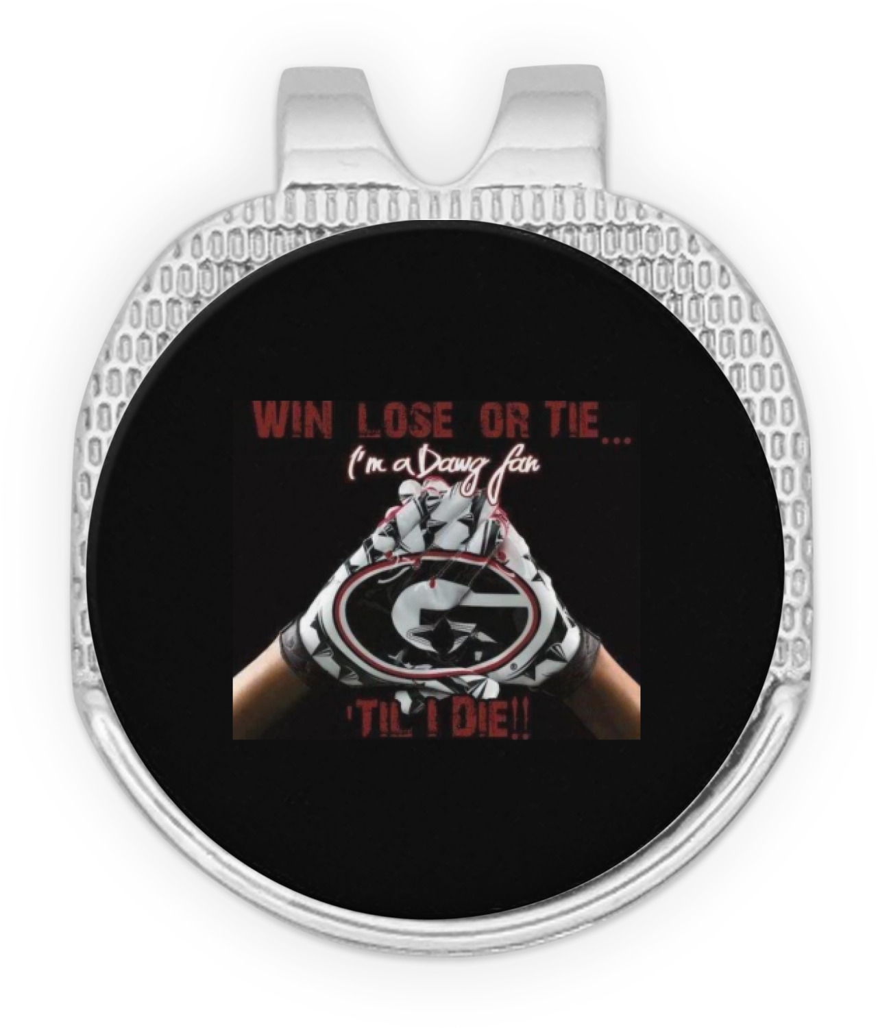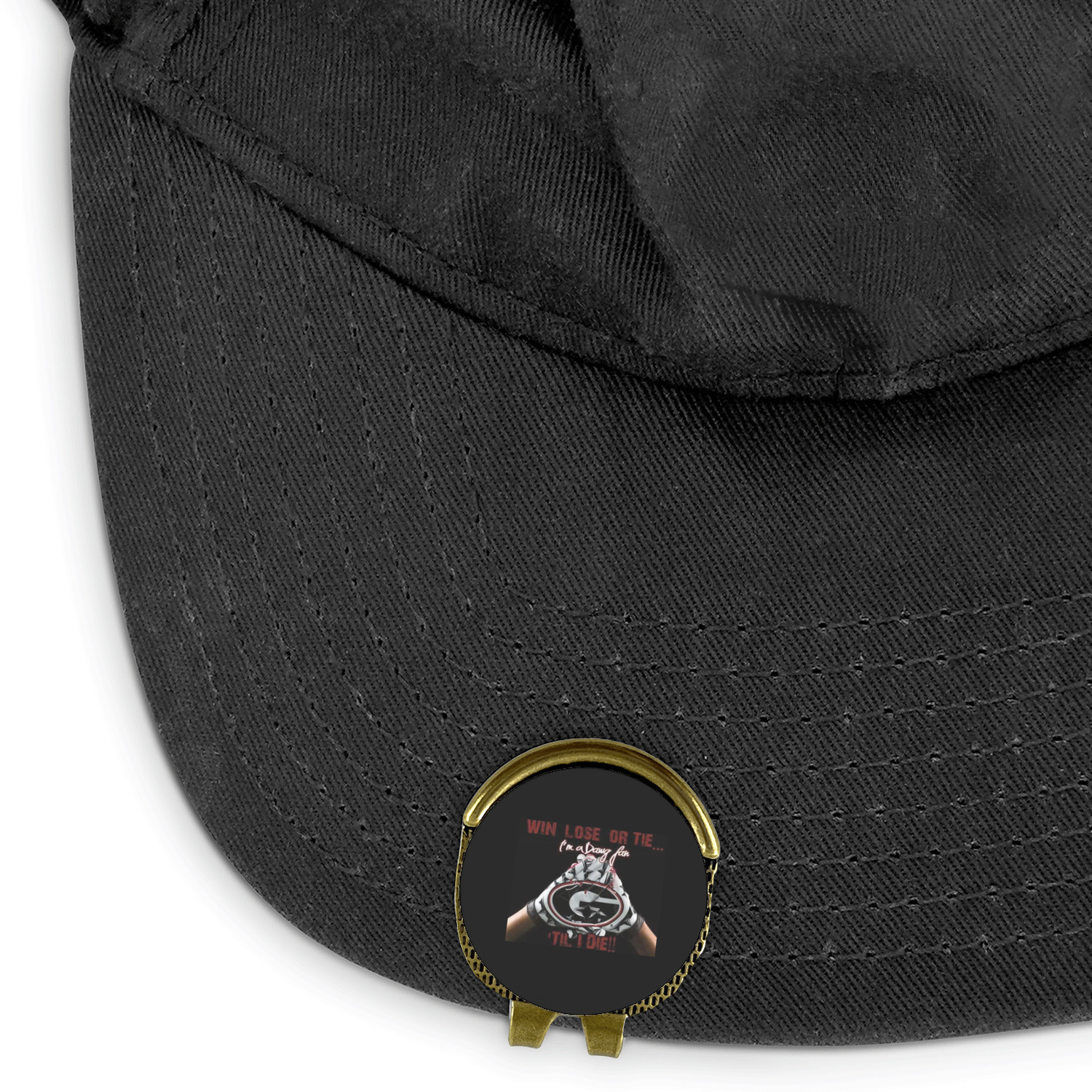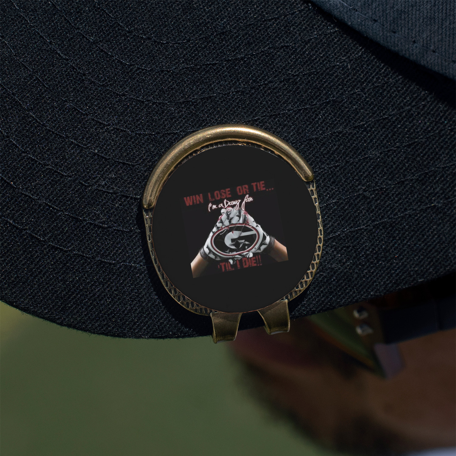 This round shaped little clip is simply 1.25" x 1.5". A clip wraps around to the back of the ball marker holder in order to be able to clip it to the bill of your hat or even your belt. The metal ball marker attaches by a magnet on the clip. Available in stainless steel natural finish or gold finish, you are sure to find one to suit your style. This makes for convenient removal when you need to use it. No more digging in your bag or pockets trying to find it!