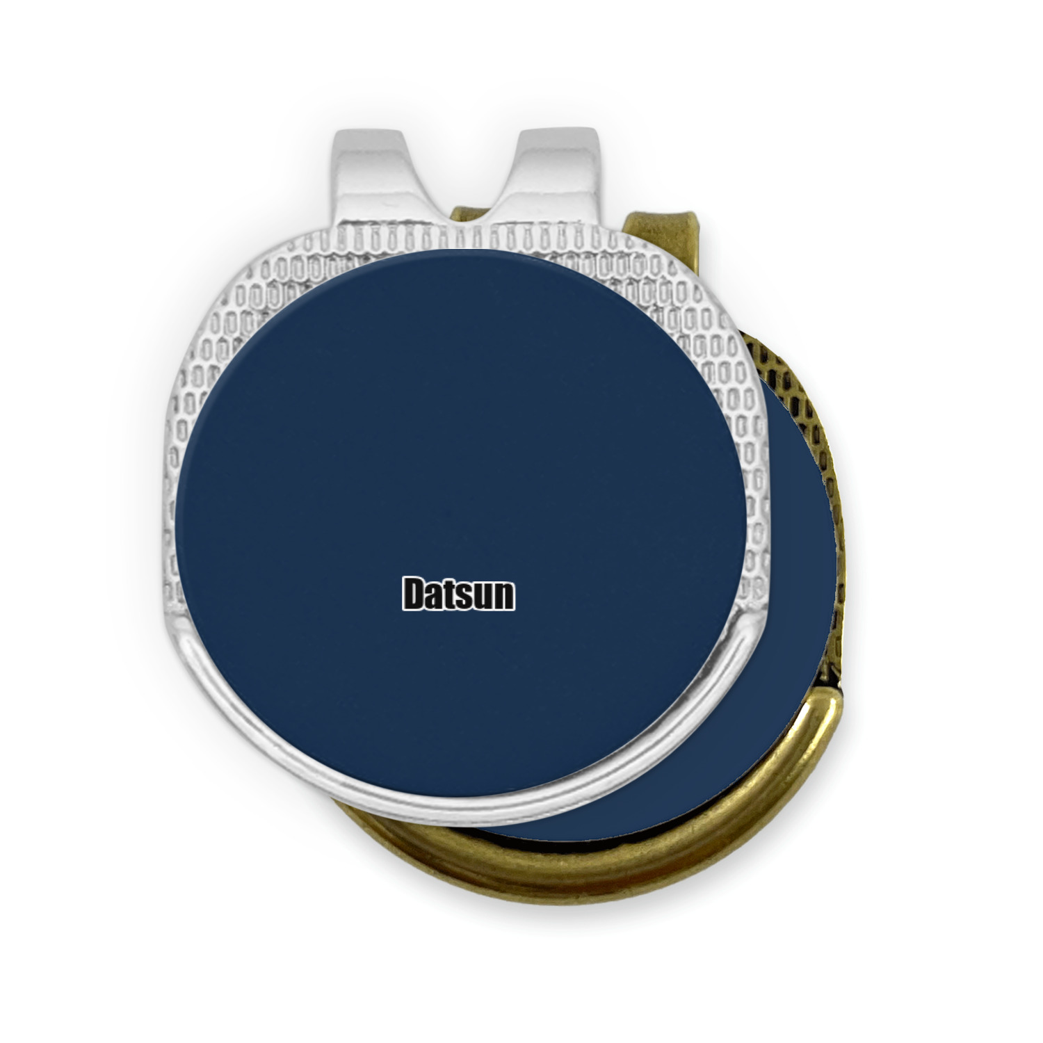This round shaped little clip is simply 1.25" x 1.5". A clip wraps around to the back of the ball marker holder in order to be able to clip it to the bill of your hat or even your belt. The metal ball marker attaches by a magnet on the clip. Available in stainless steel natural finish or gold finish, you are sure to find one to suit your style. This makes for convenient removal when you need to use it. No more digging in your bag or pockets trying to find it!