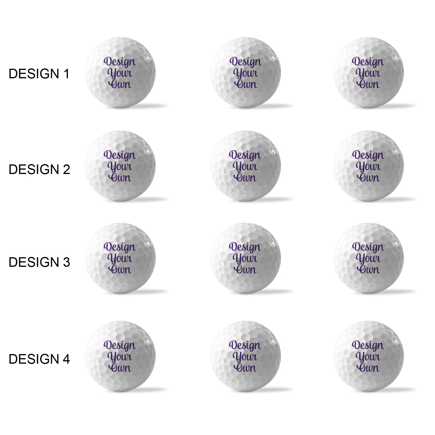 Printed in a 7/8" circle on each ball, you can customize these with our design studio or use your own designs. For a set of 3 you can design each one individually, for a set of 12 you will be able to use 4 unique designs and will receive 3 balls with each design.