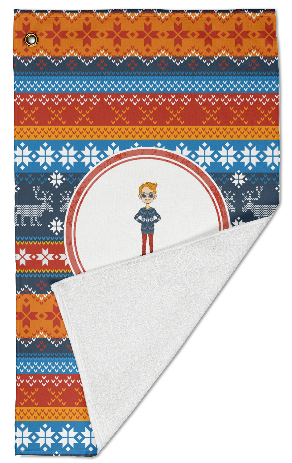 Hipster Winter Design on Custom Golf Towel - Poly-Cotton Blend - Large