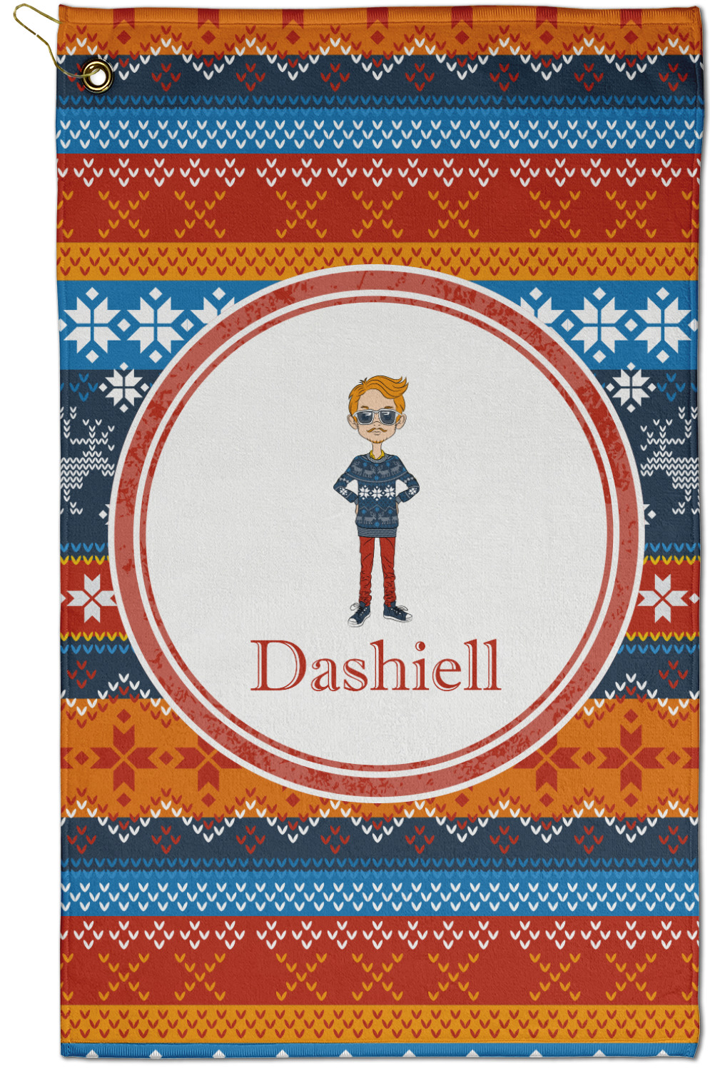 Hipster Winter Design on Custom Golf Towel - Poly-Cotton Blend - Small