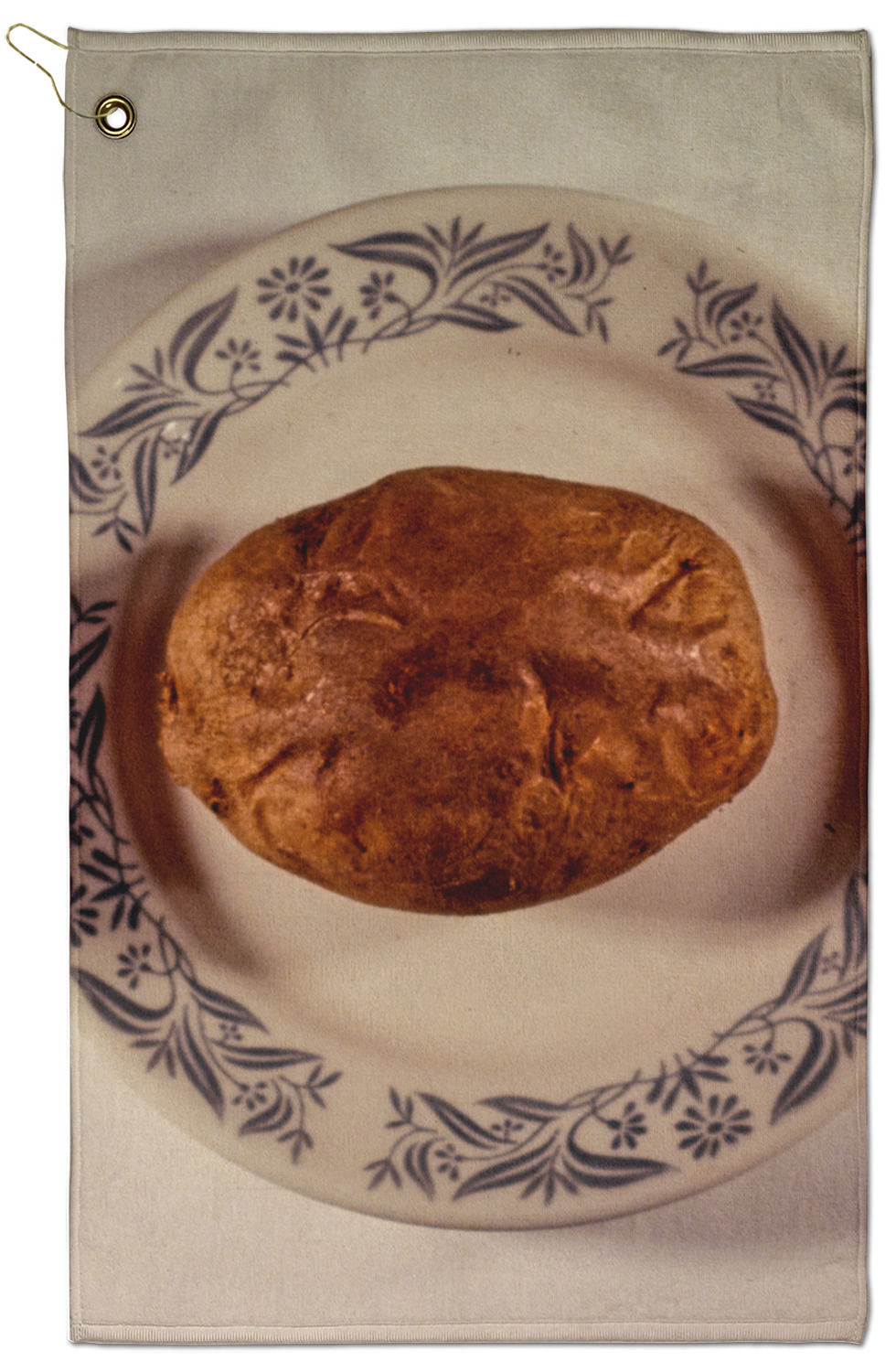 The towel is fully printed / patterned on the front polyester side; and is white on terrycloth cotton backside. The towel has grommet and a pear spring clip in the top left corner. Our golf towels are available in 100s of different prints and patterns.