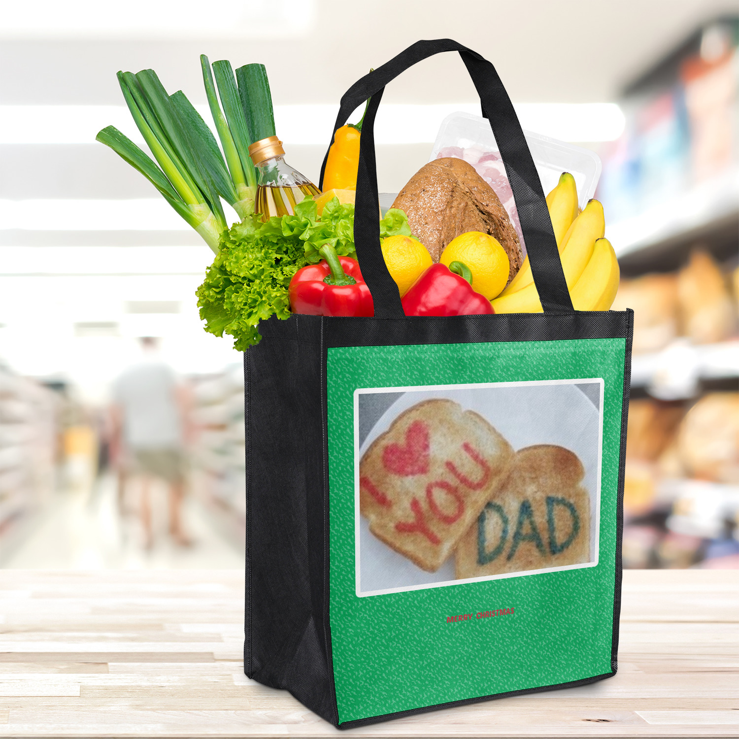 Reduce the number of plastic waste you produce weekly by switching to our reusable grocery bags! Once personalized, these grocery bags will display a favorite theme, pattern, or treasured artwork, in an eco-friendly way! Customize one, or a whole set, for your weekly grocery runs!