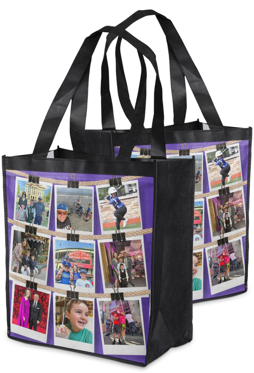 Reduce the number of plastic waste you produce weekly by switching to our reusable grocery bags! Once personalized, these grocery bags will display a favorite theme, pattern, or treasured artwork, in an eco-friendly way! Customize one, or a whole set, for your weekly grocery runs!