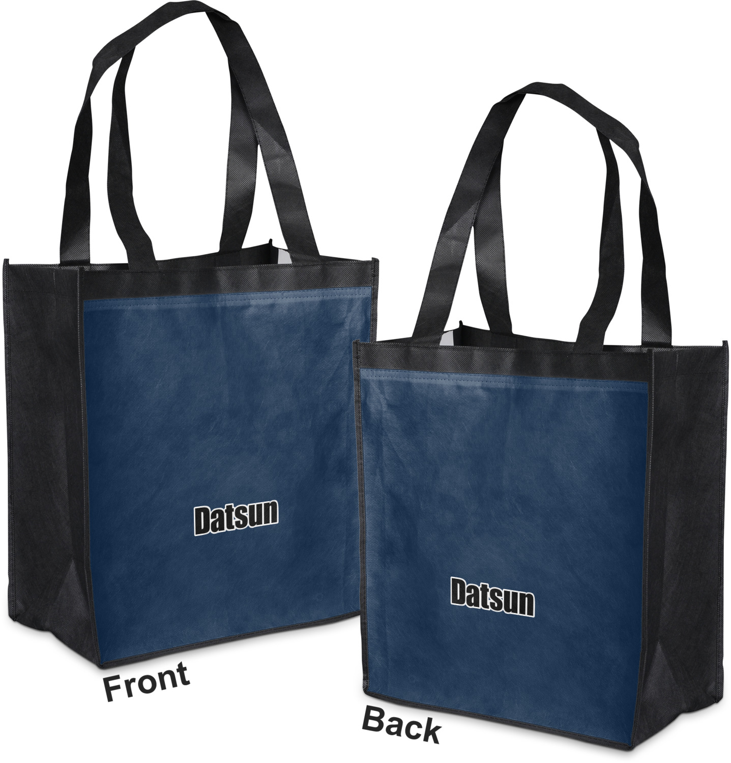 Made from a durable, biodegradable material, these reusable shopping bags can support up to 30 pounds of weight. With two large handles, measuring at 8.5 inches each, these personalized tote bags are easy to carry to your vehicle or home. The bag itself is 12 by 13.5 inches, and can expand to a depth of 7 inches. Your customization is printed on both the front and back, while the remaining sides, trim, and handle are a sleek, charcoal black.