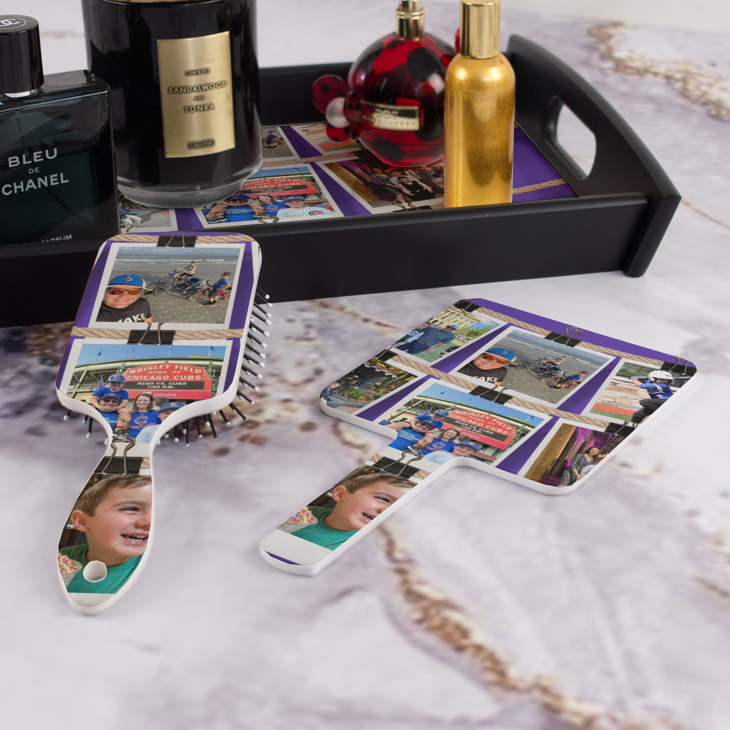 These hair brushes pair with our customizable hand mirrors to make a great gift set.