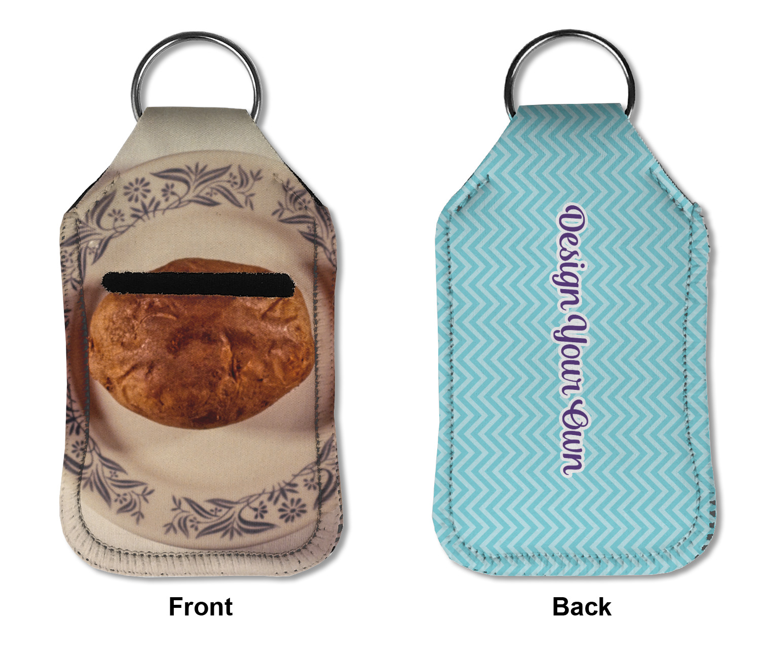 Each hand sanitizer holder comes with its own empty travel-sized, refillable hand sanitizer sure to fit snug in your customized sanitizer case! Our hand sanitizer cases are a durable, yet soft neoprene material sure to last any daily activities or travel agenda. Customize and personalize a hand sanitizer bottle holder with one of our two sizes - small (4.25" x 2.25") or large (5.5" x 2.5"). Each travel sanitizer holder comes with a keyring for attachment on bags, keys, or more!
