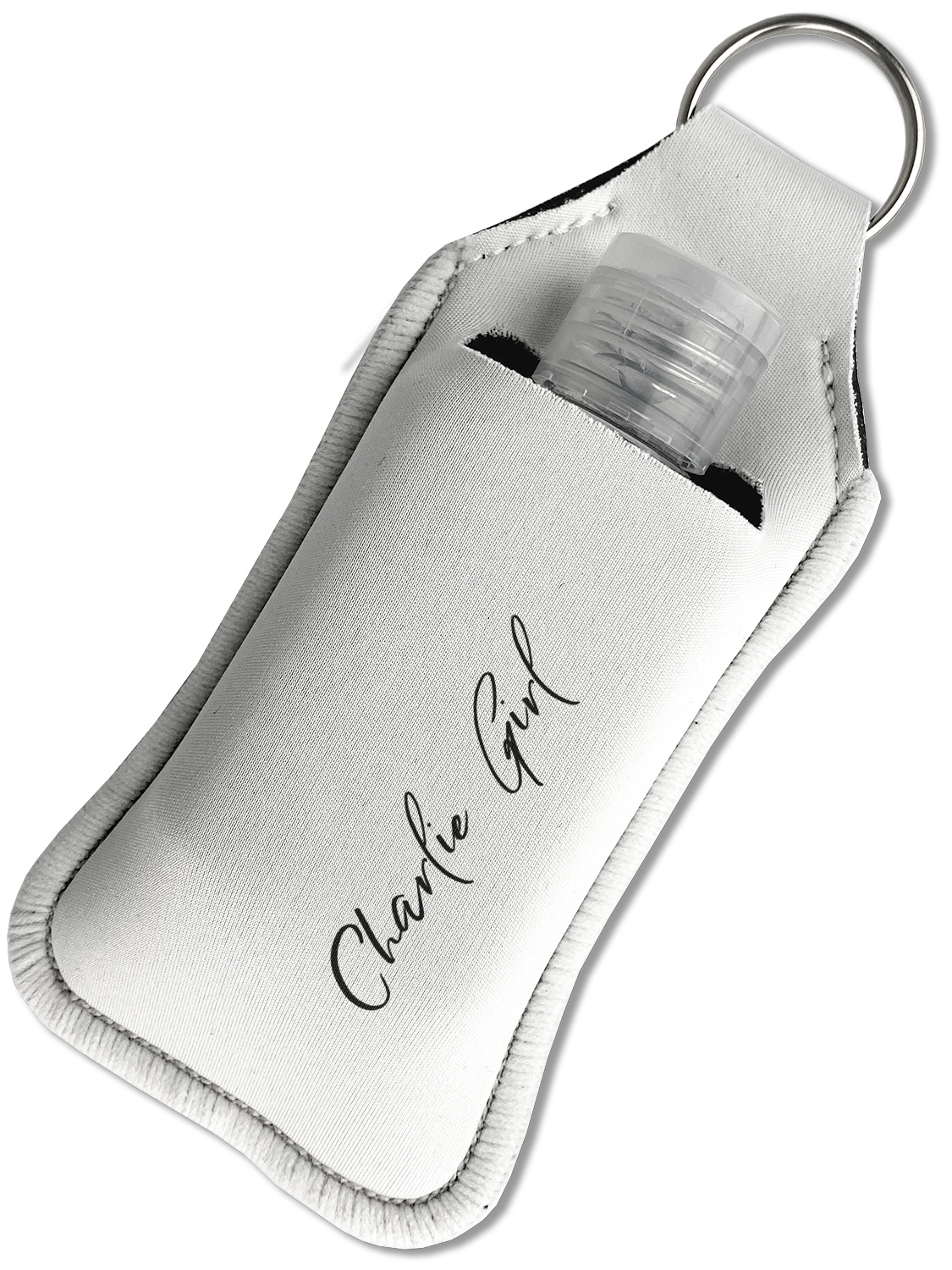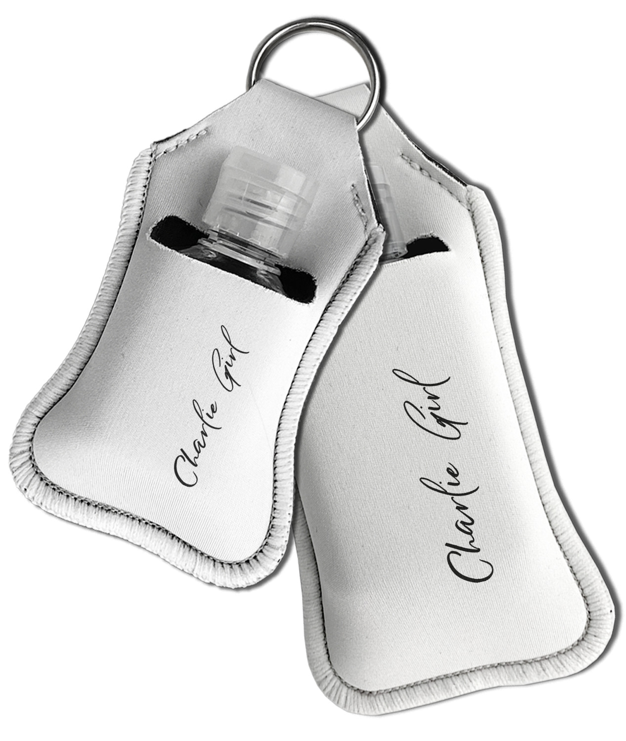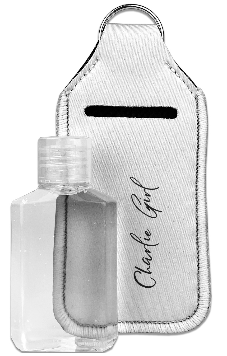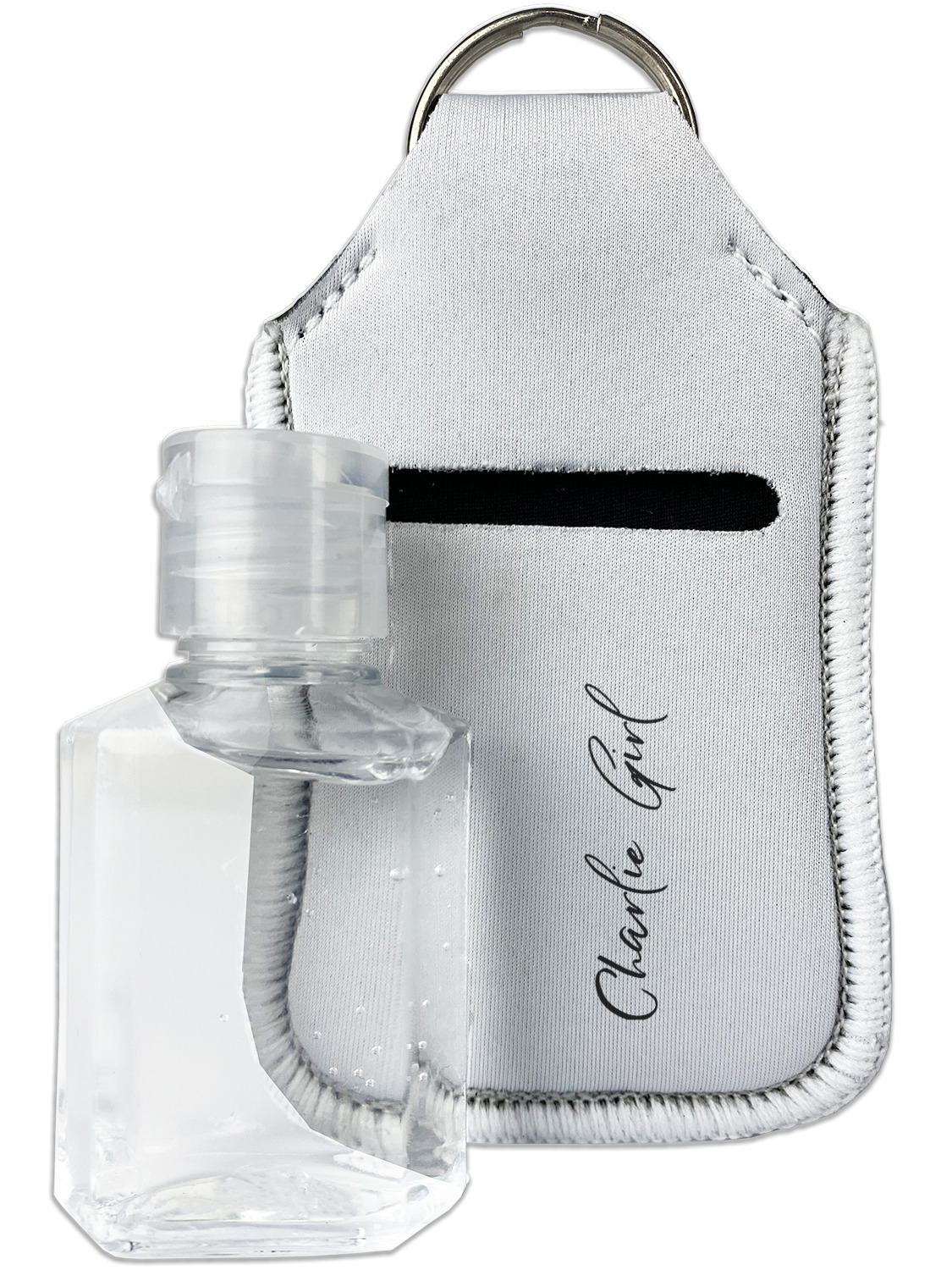 Each hand sanitizer holder comes with its own empty travel-sized, refillable hand sanitizer sure to fit snug in your customized sanitizer case! Our hand sanitizer cases are a durable, yet soft neoprene material sure to last any daily activities or travel agenda. Customize and personalize a hand sanitizer bottle holder with one of our two sizes - small (4.25" x 2.25") or large (5.5" x 2.5"). Each travel sanitizer holder comes with a keyring for attachment on bags, keys, or more!