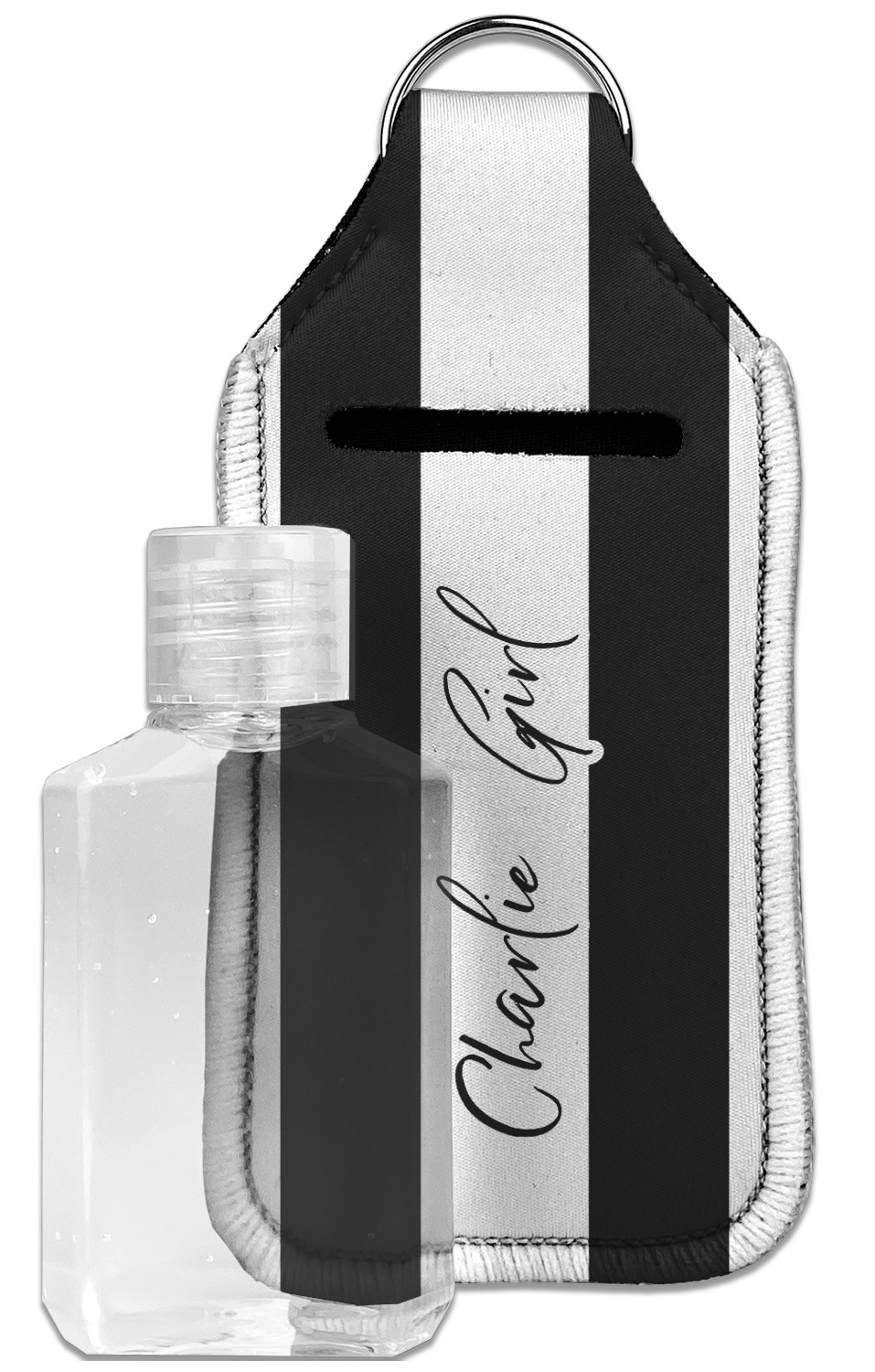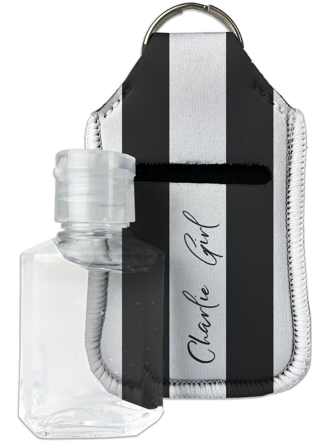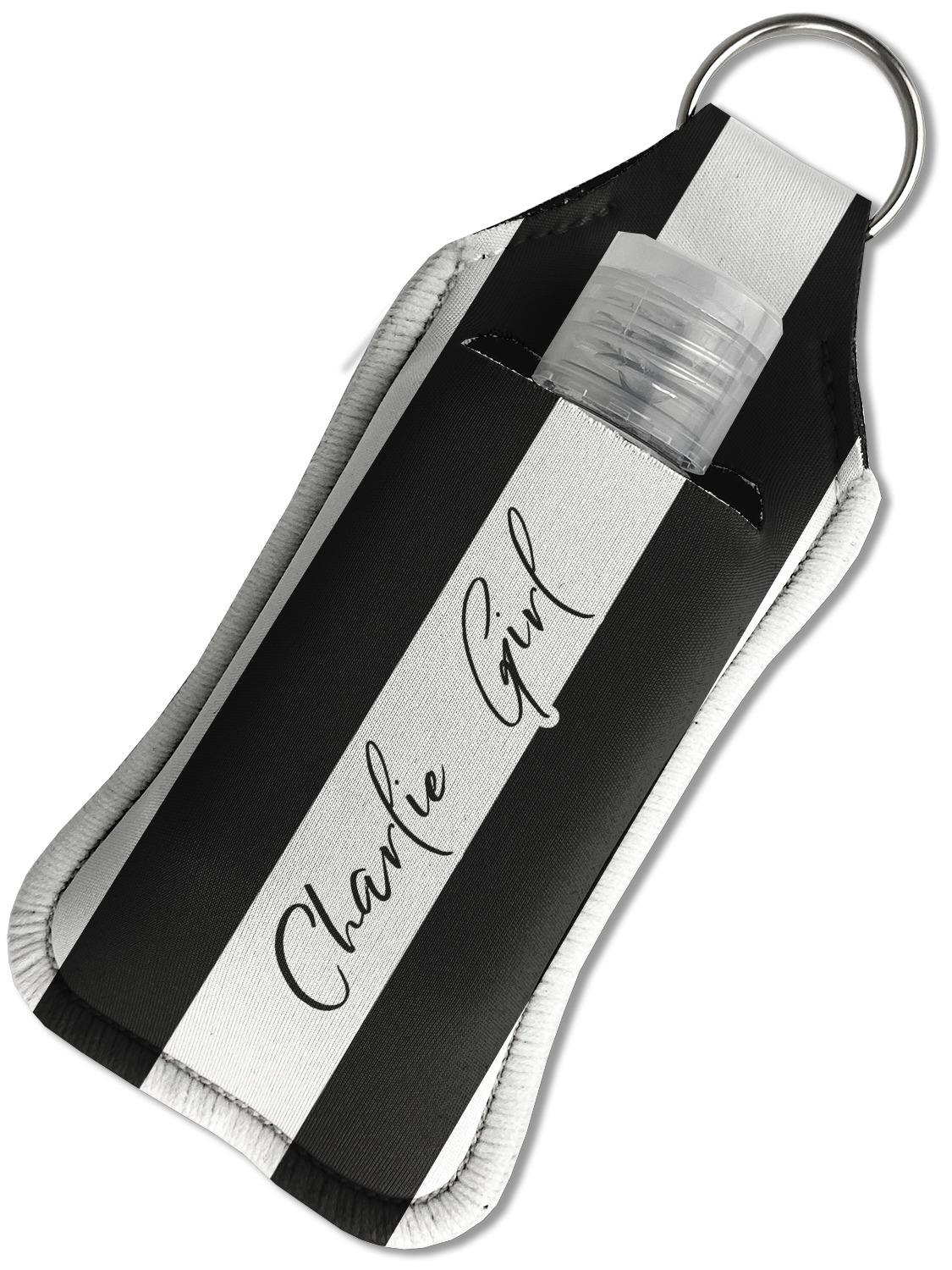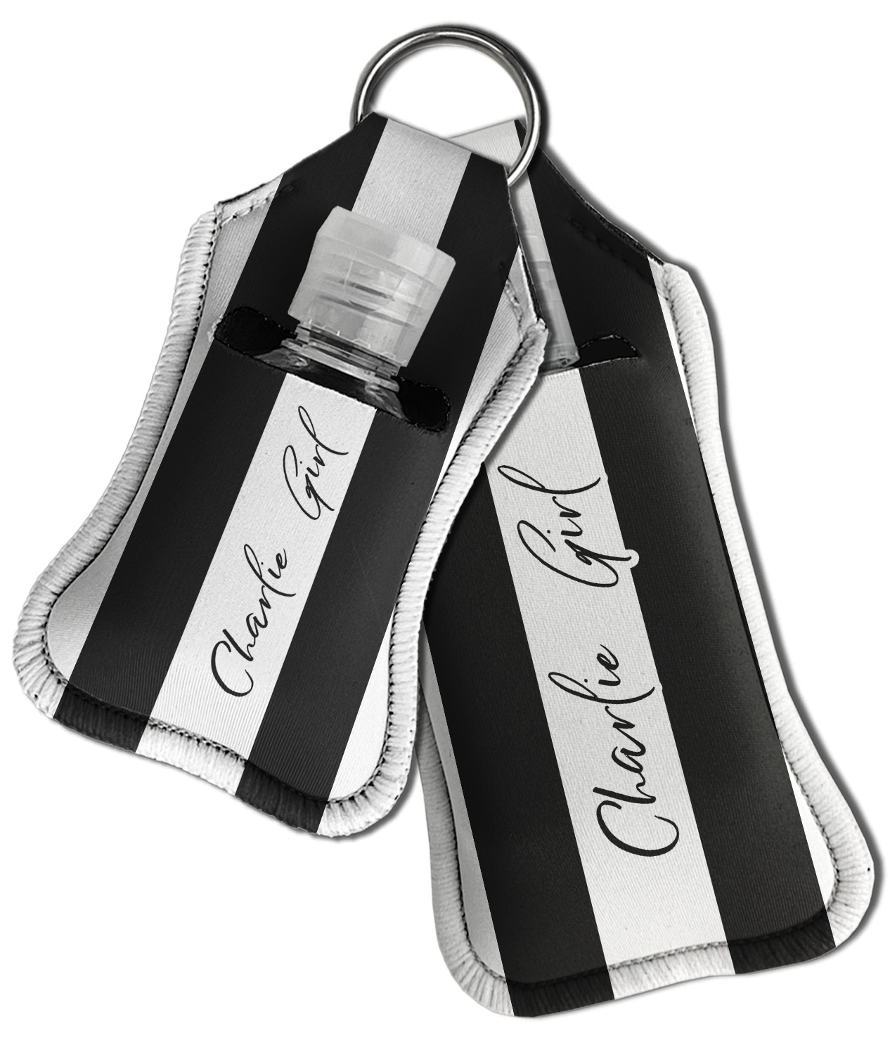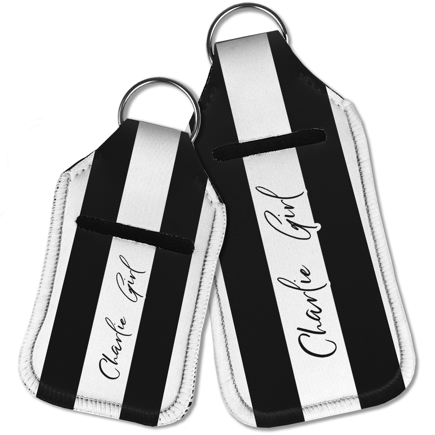 Each hand sanitizer holder comes with its own empty travel-sized, refillable hand sanitizer sure to fit snug in your customized sanitizer case! Our hand sanitizer cases are a durable, yet soft neoprene material sure to last any daily activities or travel agenda. Customize and personalize a hand sanitizer bottle holder with one of our two sizes - small (4.25" x 2.25") or large (5.5" x 2.5"). Each travel sanitizer holder comes with a keyring for attachment on bags, keys, or more!