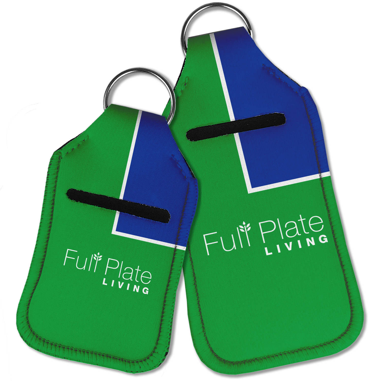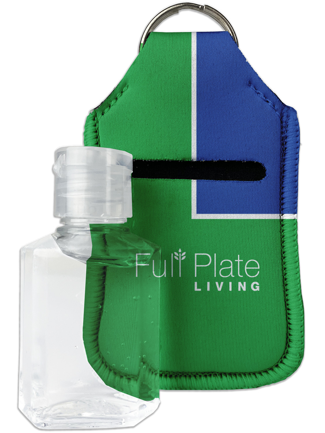 Each hand sanitizer holder comes with its own empty travel-sized, refillable hand sanitizer sure to fit snug in your customized sanitizer case! Our hand sanitizer cases are a durable, yet soft neoprene material sure to last any daily activities or travel agenda. Customize and personalize a hand sanitizer bottle holder with one of our two sizes - small (4.25" x 2.25") or large (5.5" x 2.5"). Each travel sanitizer holder comes with a keyring for attachment on bags, keys, or more!