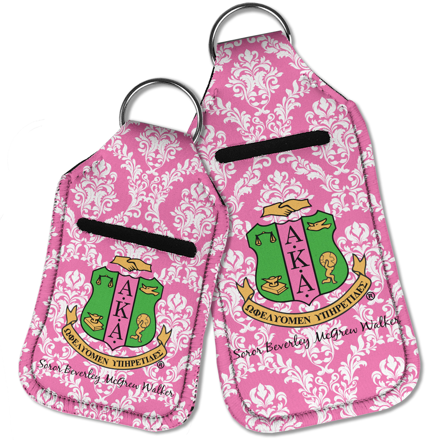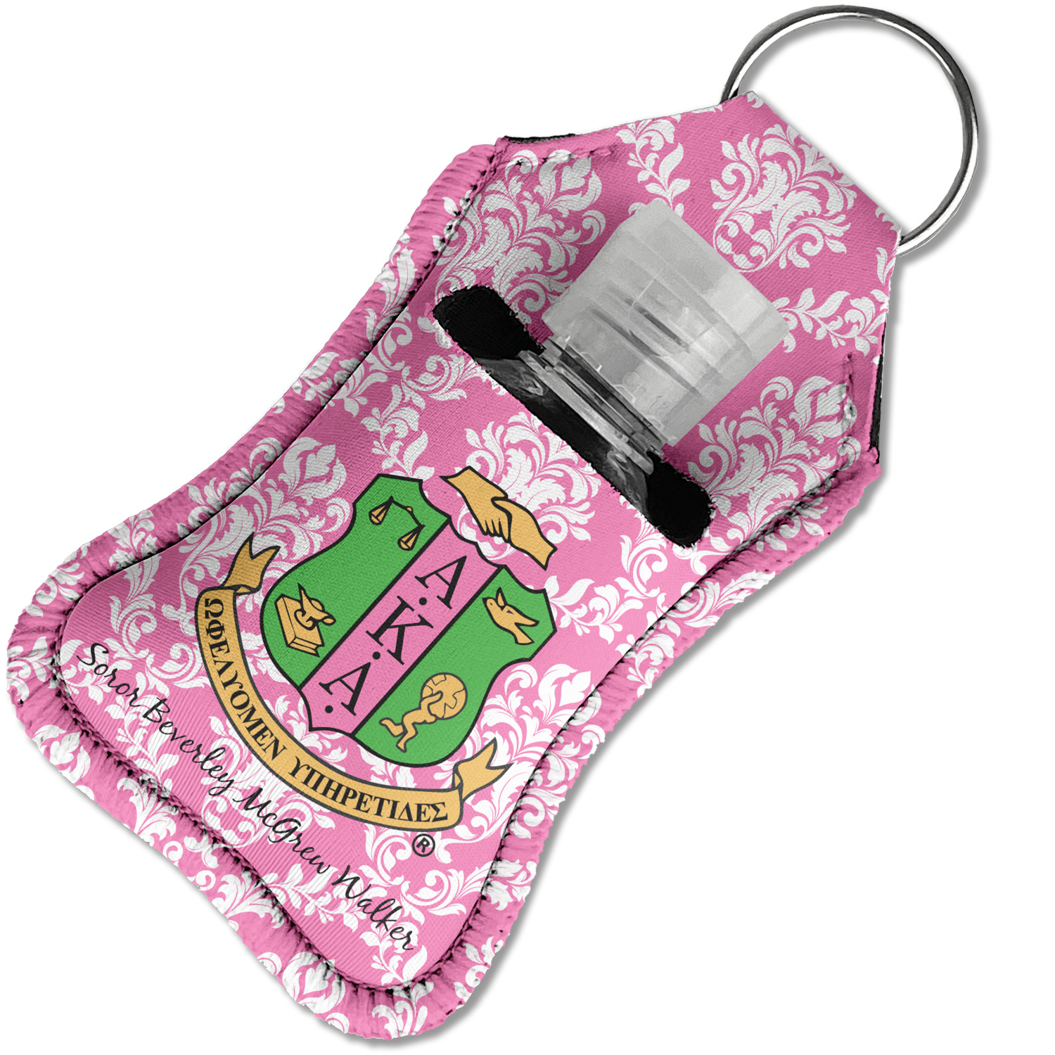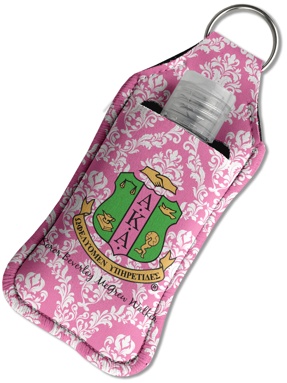 Each hand sanitizer holder comes with its own empty travel-sized, refillable hand sanitizer sure to fit snug in your customized sanitizer case! Our hand sanitizer cases are a durable, yet soft neoprene material sure to last any daily activities or travel agenda. Customize and personalize a hand sanitizer bottle holder with one of our two sizes - small (4.25" x 2.25") or large (5.5" x 2.5"). Each travel sanitizer holder comes with a keyring for attachment on bags, keys, or more!