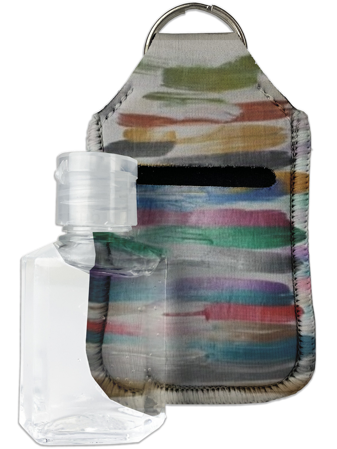 Each hand sanitizer holder comes with its own empty travel-sized, refillable hand sanitizer sure to fit snug in your customized sanitizer case! Our hand sanitizer cases are a durable, yet soft neoprene material sure to last any daily activities or travel agenda. Customize and personalize a hand sanitizer bottle holder with one of our two sizes - small (4.25" x 2.25") or large (5.5" x 2.5"). Each travel sanitizer holder comes with a keyring for attachment on bags, keys, or more!
