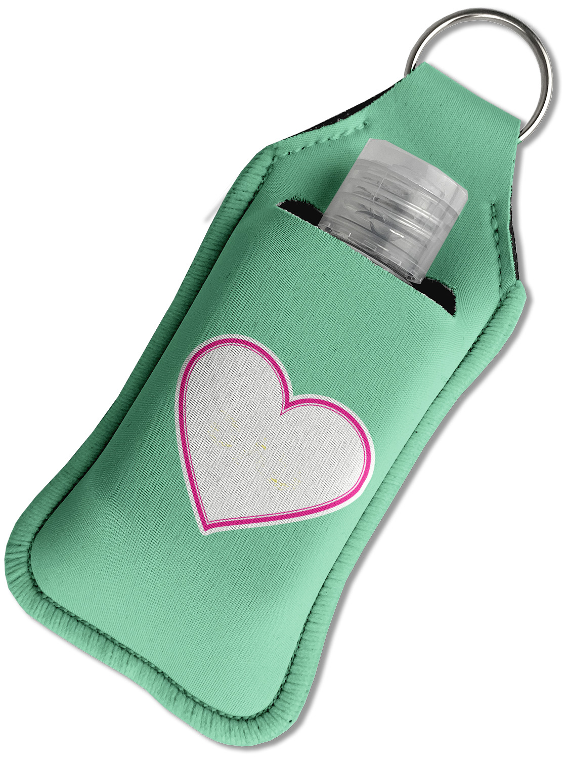 Each hand sanitizer holder comes with its own empty travel-sized, refillable hand sanitizer sure to fit snug in your customized sanitizer case! Our hand sanitizer cases are a durable, yet soft neoprene material sure to last any daily activities or travel agenda. Customize and personalize a hand sanitizer bottle holder with one of our two sizes - small (4.25" x 2.25") or large (5.5" x 2.5"). Each travel sanitizer holder comes with a keyring for attachment on bags, keys, or more!