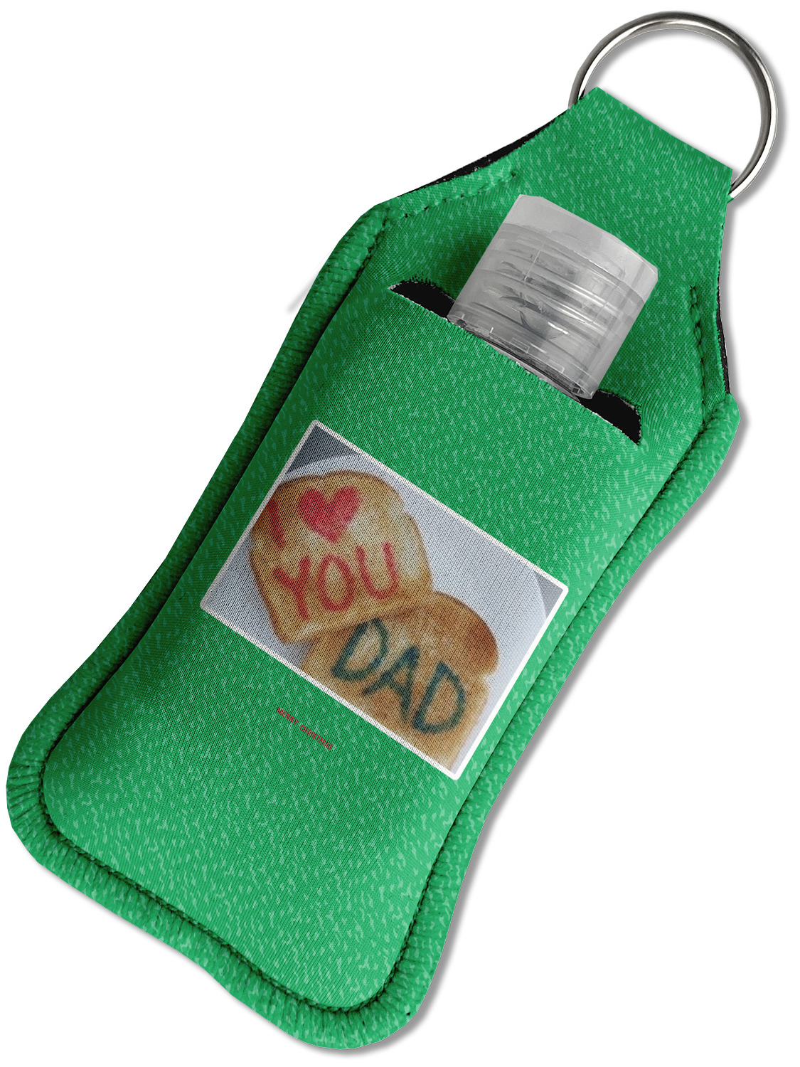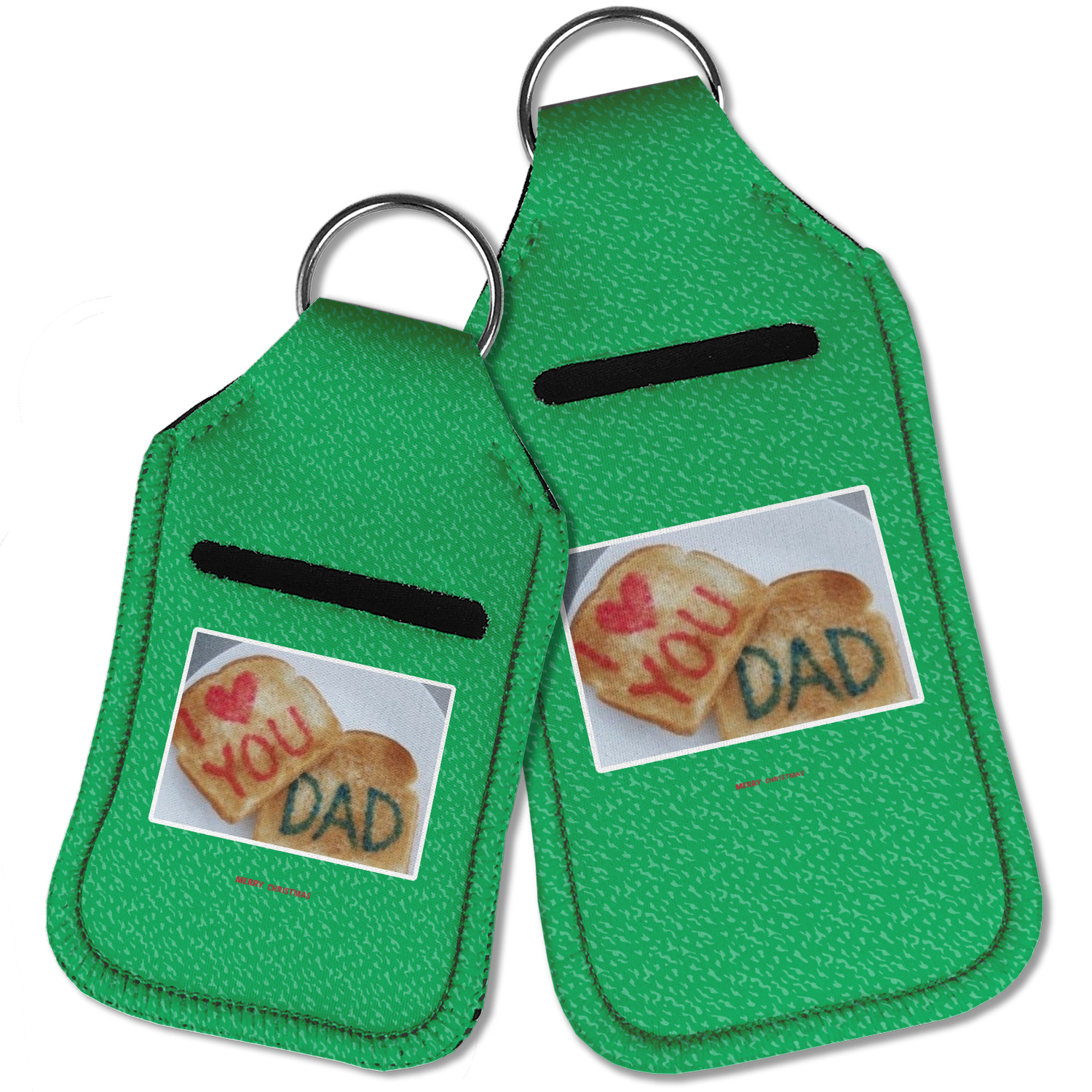 Each hand sanitizer holder comes with its own empty travel-sized, refillable hand sanitizer sure to fit snug in your customized sanitizer case! Our hand sanitizer cases are a durable, yet soft neoprene material sure to last any daily activities or travel agenda. Customize and personalize a hand sanitizer bottle holder with one of our two sizes - small (4.25" x 2.25") or large (5.5" x 2.5"). Each travel sanitizer holder comes with a keyring for attachment on bags, keys, or more!