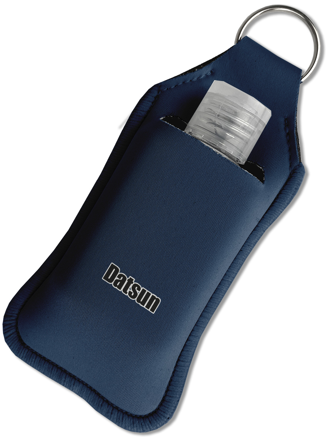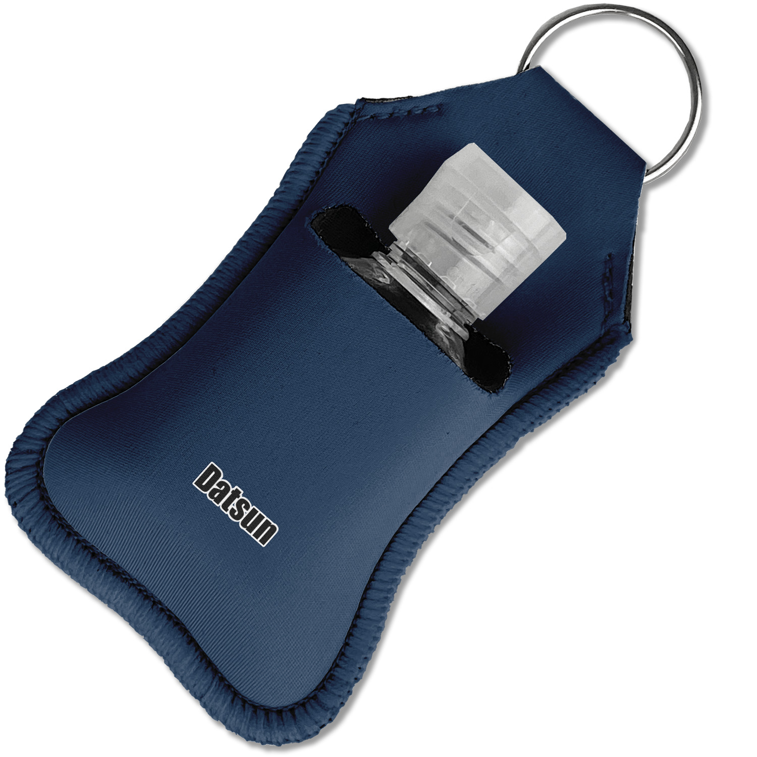 Each hand sanitizer holder comes with its own empty travel-sized, refillable hand sanitizer sure to fit snug in your customized sanitizer case! Our hand sanitizer cases are a durable, yet soft neoprene material sure to last any daily activities or travel agenda. Customize and personalize a hand sanitizer bottle holder with one of our two sizes - small (4.25" x 2.25") or large (5.5" x 2.5"). Each travel sanitizer holder comes with a keyring for attachment on bags, keys, or more!