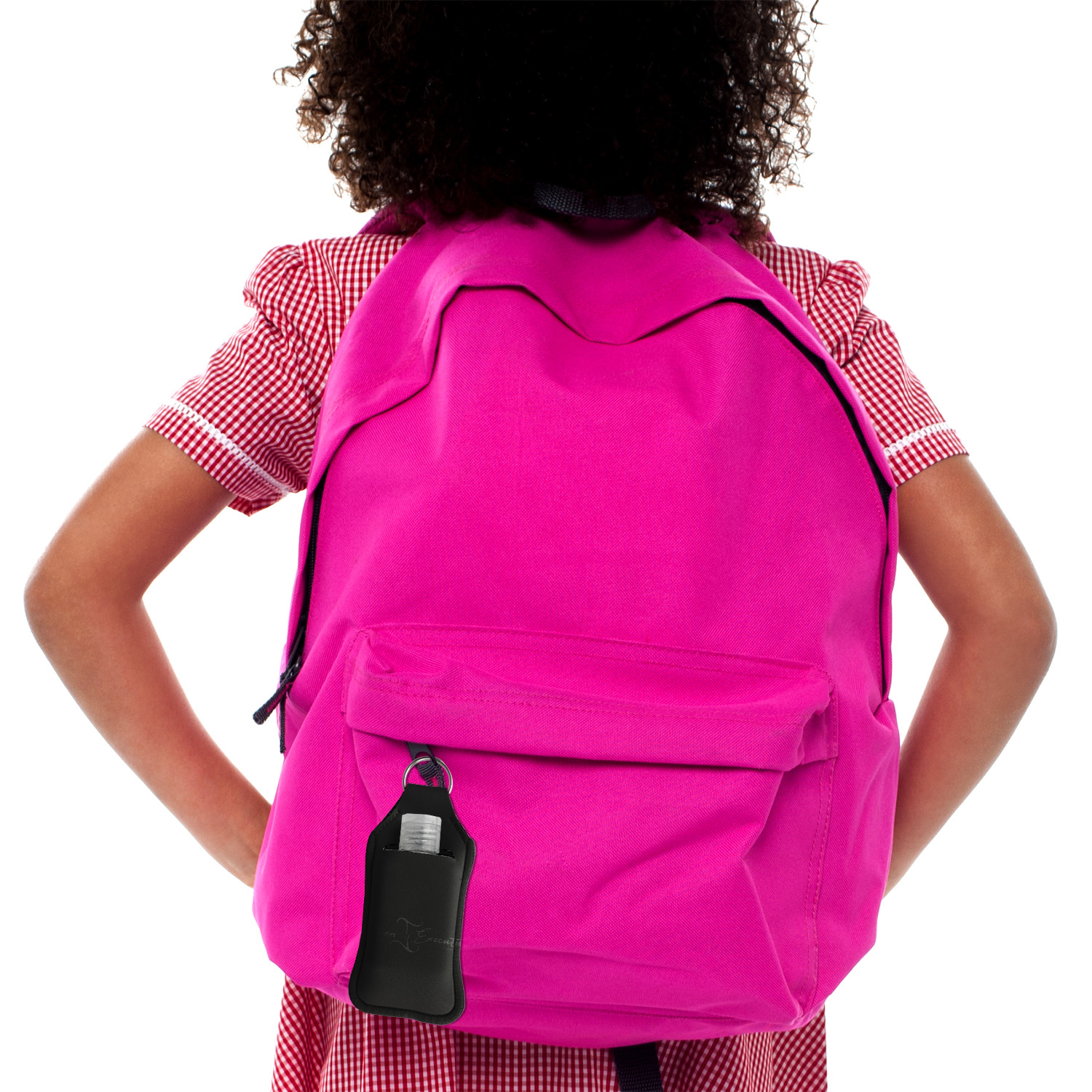 Each hand sanitizer holder comes with its own empty travel-sized, refillable hand sanitizer sure to fit snug in your customized sanitizer case! Our hand sanitizer cases are a durable, yet soft neoprene material sure to last any daily activities or travel agenda. Customize and personalize a hand sanitizer bottle holder with one of our two sizes - small (4.25" x 2.25") or large (5.5" x 2.5"). Each travel sanitizer holder comes with a keyring for attachment on bags, keys, or more!