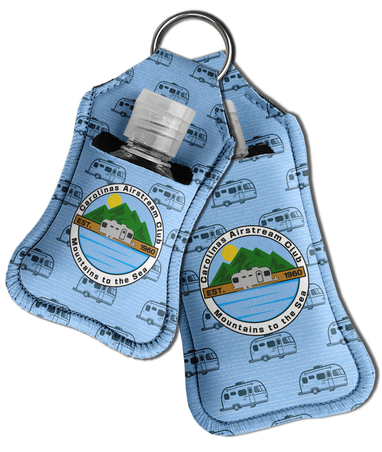 Each hand sanitizer holder comes with its own empty travel-sized, refillable hand sanitizer sure to fit snug in your customized sanitizer case! Our hand sanitizer cases are a durable, yet soft neoprene material sure to last any daily activities or travel agenda. Customize and personalize a hand sanitizer bottle holder with one of our two sizes - small (4.25" x 2.25") or large (5.5" x 2.5"). Each travel sanitizer holder comes with a keyring for attachment on bags, keys, or more!