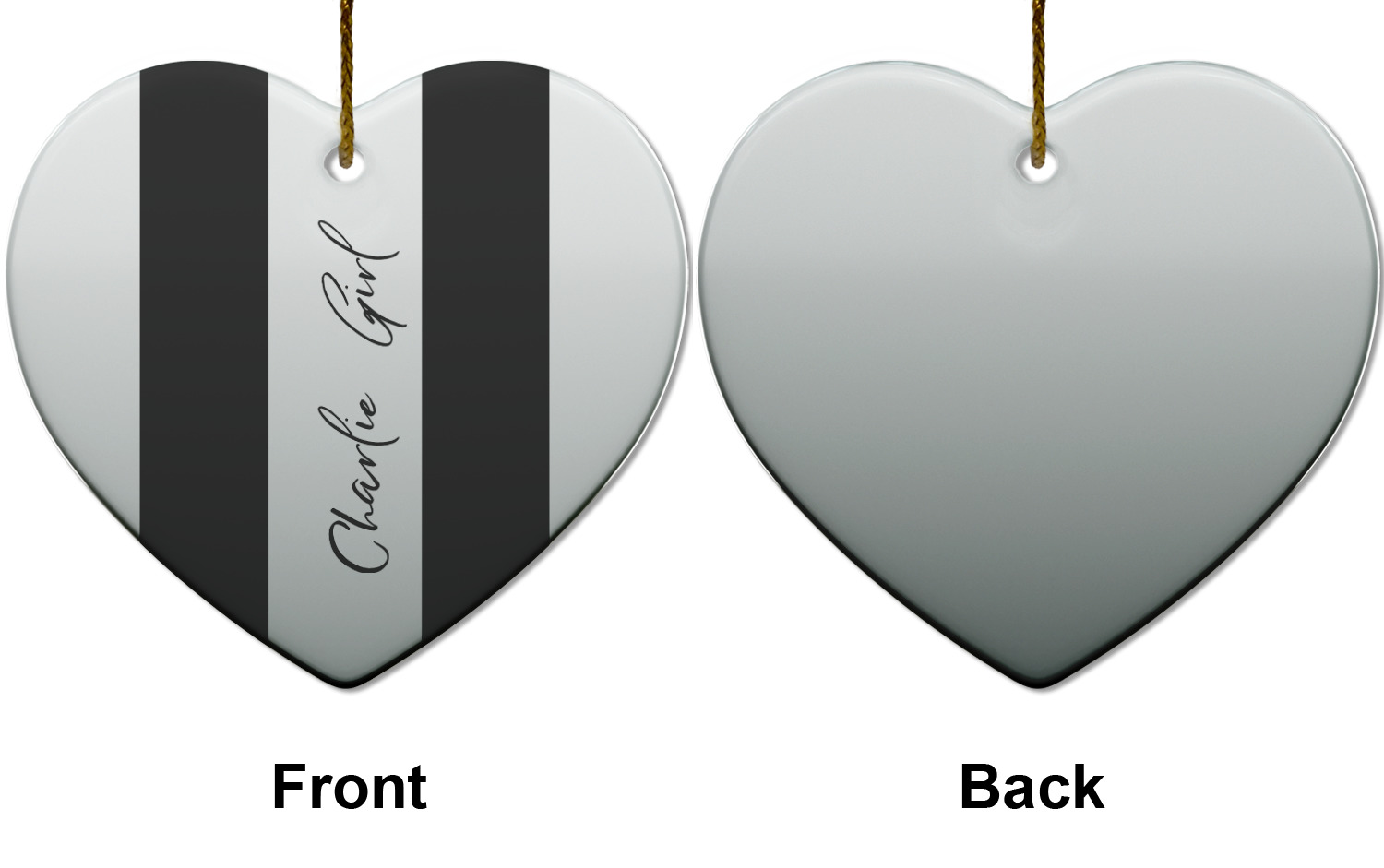 Have a happy holiday and share the joy of Christmas with your loved ones by hanging up personalized ceramic ornaments! Ornaments add a touch of who you are and the things you love onto the Christmas tree! Create custom ornaments for the kids and have them hang up their own star with their name, or pay remembrance this holiday to missed loved ones with our ceramic heart ornament. Browse many of our unique designs and customize them the way you'd like! From monograms, logos, and patterns, we have it all! You can even upload a photo of your family for us to print onto the ornament! The possibilities are endless!