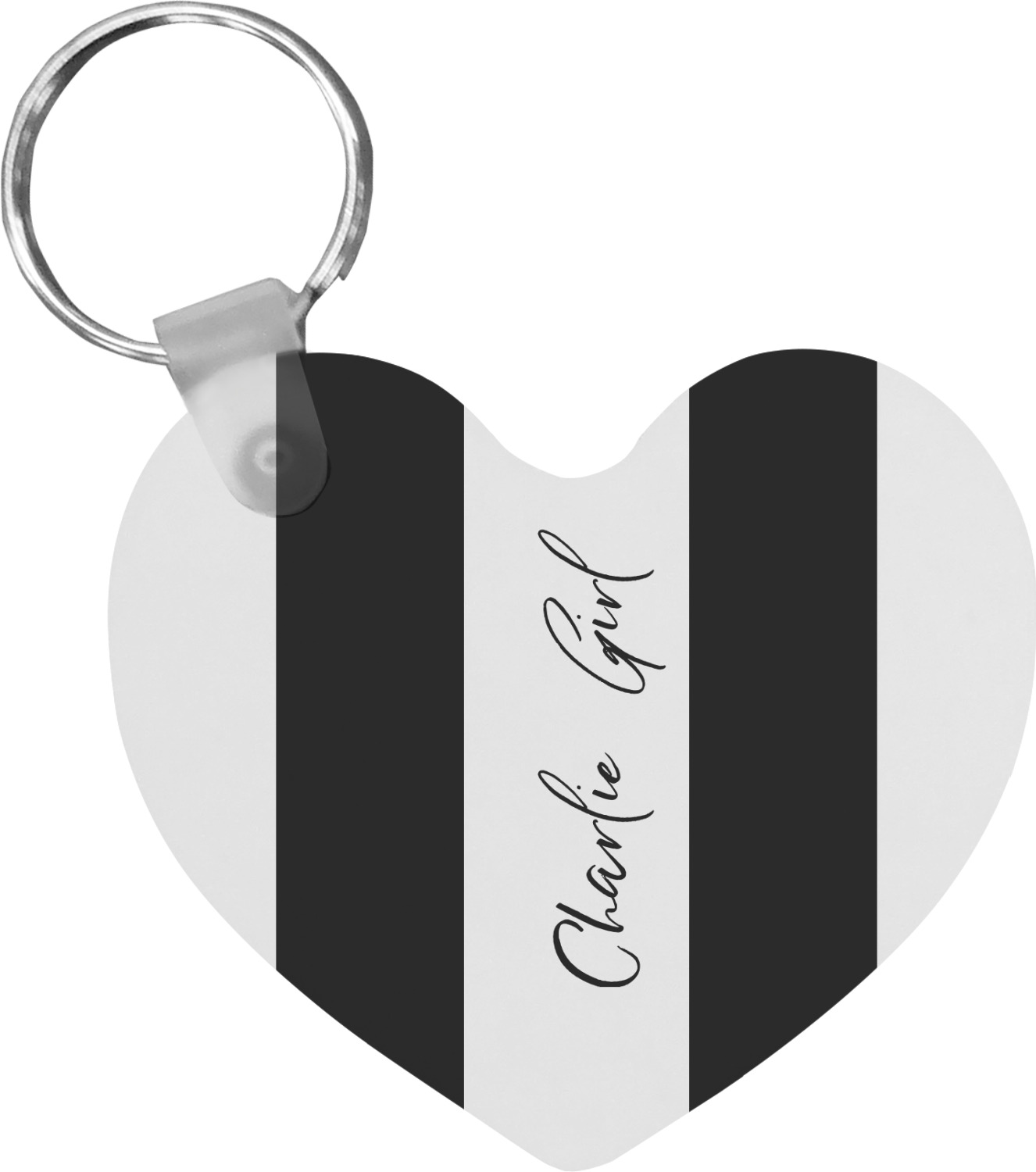 Our personalized keychains attach to the included metal, split key ring with a plastic, removable snap. Since a metal ring is included with your purchase, you have the liberty to keep your keys together on the ring, with or without your unique keychain. We offer this keychain in three different shapes: circle, heart, or diamond. We print your personalized design(s) on both sides of the key chain, and the surface has a glossy, reflective finish that only emphasizes your design. Each keychain is approximately 2.25 by 2.25 inches.