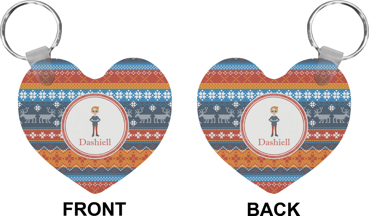 Our personalized keychains attach to the included metal, split key ring with a plastic, removable snap. Since a metal ring is included with your purchase, you have the liberty to keep your keys together on the ring, with or without your unique keychain. We offer this keychain in three different shapes: circle, heart, or diamond. We print your personalized design(s) on both sides of the key chain, and the surface has a glossy, reflective finish that only emphasizes your design. Each keychain is approximately 2.25 by 2.25 inches.