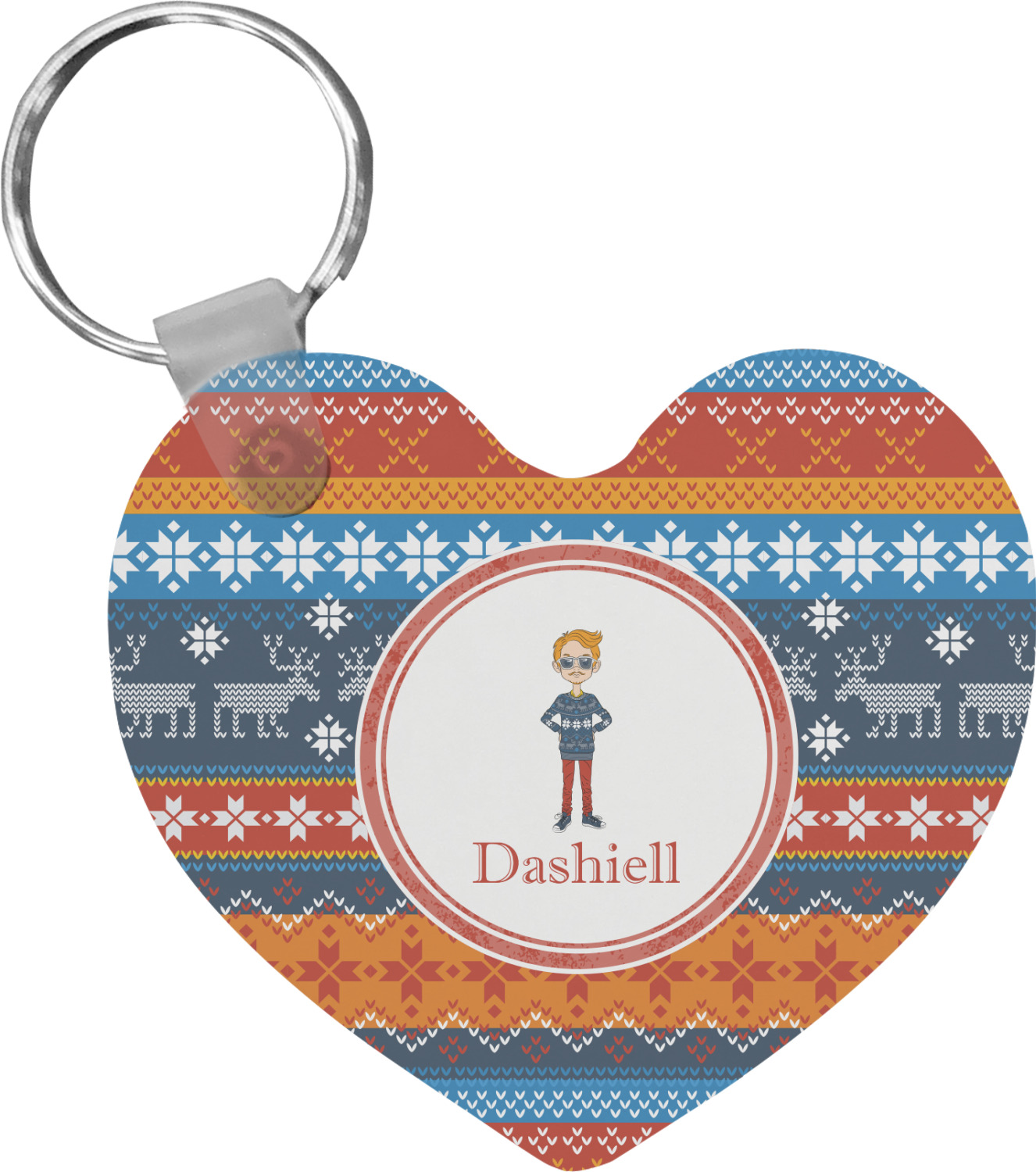 Hipster Winter Design on Custom Heart Plastic Keychain