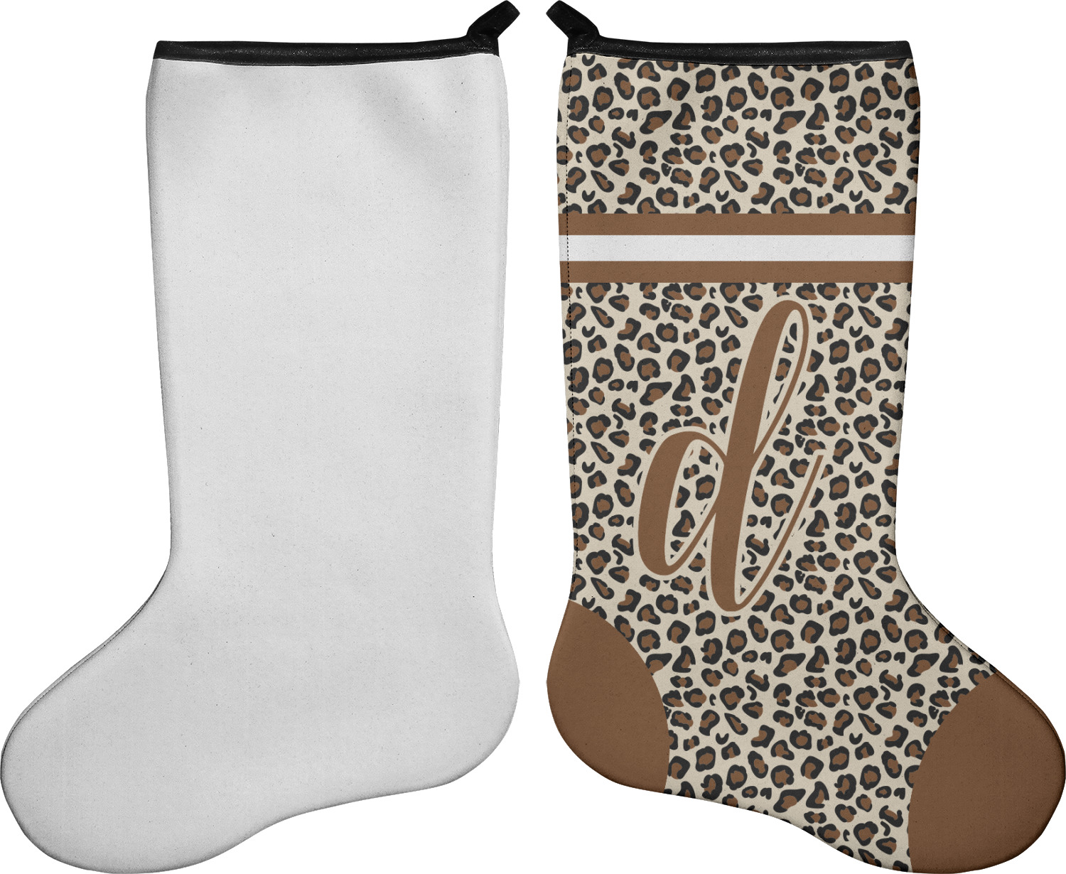 These 17" x 11" stockings are made of neoprene and have a black trim to give them a fantastic finished look. Your very own design is printed right onto the stocking, either single sided with white on the back or double sided where can use the same or different designs / patterns on the front and the back - the choice is yours. At the top of the stocking is a 2" loop for hanging.
