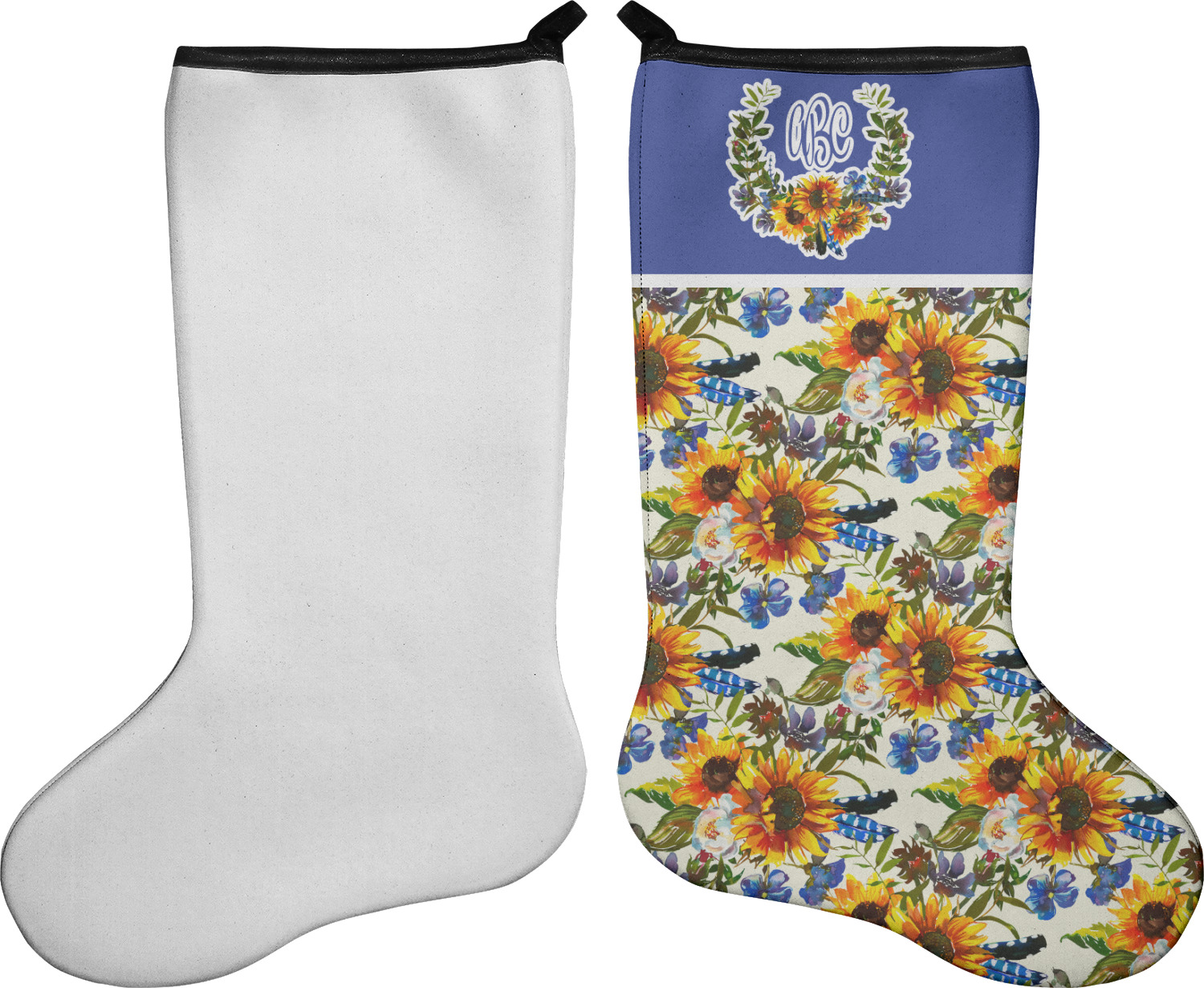 These 17" x 11" stockings are made of neoprene and have a black trim to give them a fantastic finished look. Your very own design is printed right onto the stocking, either single sided with white on the back or double sided where can use the same or different designs / patterns on the front and the back - the choice is yours. At the top of the stocking is a 2" loop for hanging.