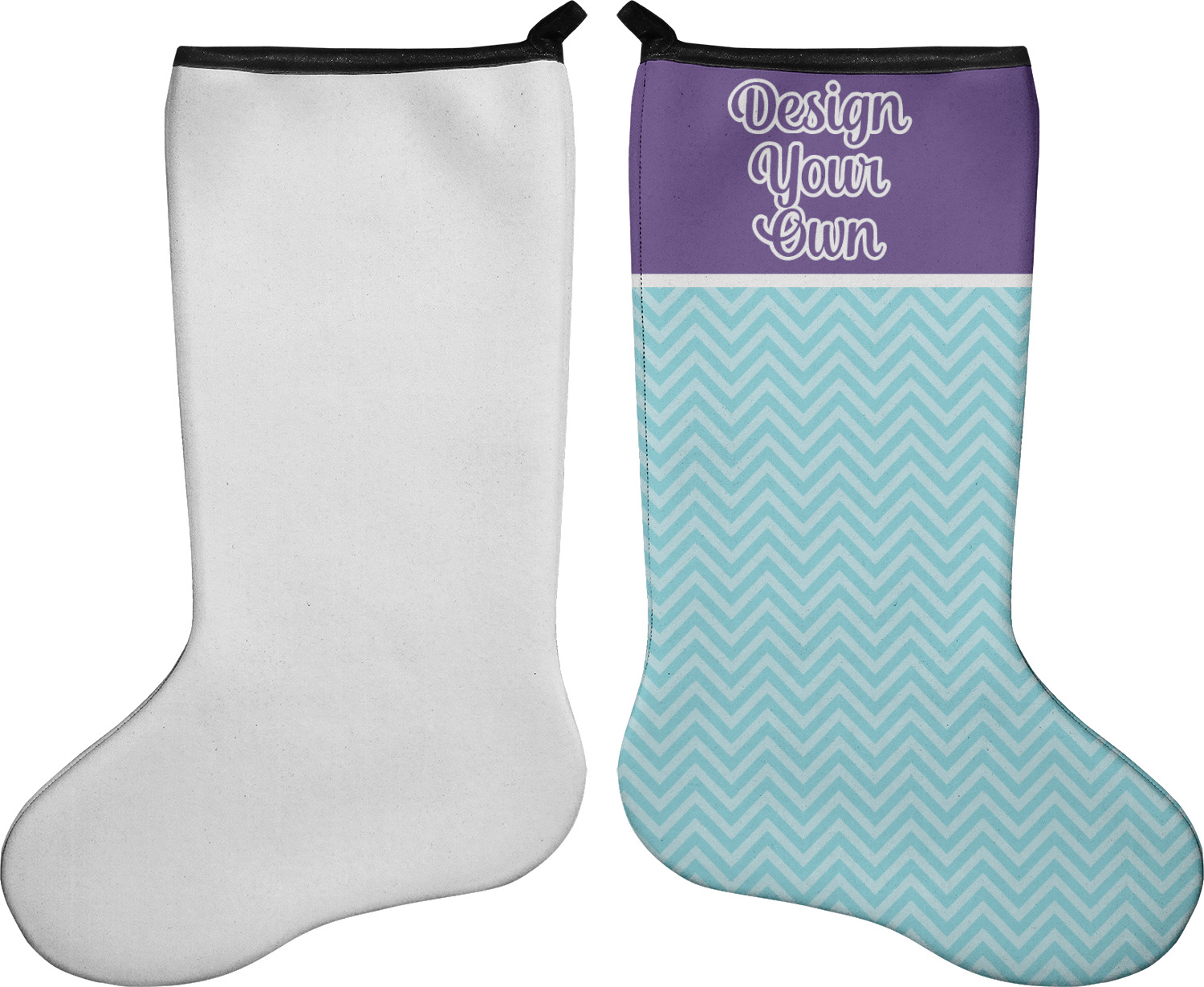 These 17" x 11" stockings are made of neoprene and have a black trim to give them a fantastic finished look. Your very own design is printed right onto the stocking, either single sided with white on the back or double sided where can use the same or different designs / patterns on the front and the back - the choice is yours. At the top of the stocking is a 2" loop for hanging.