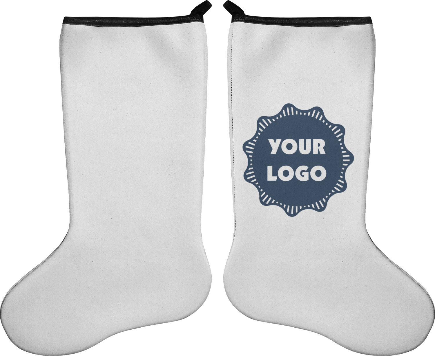 These 17" x 11" stockings are made of neoprene and have a black trim to give them a fantastic finished look. Your very own design is printed right onto the stocking, either single sided with white on the back or double sided where can use the same or different designs / patterns on the front and the back - the choice is yours. At the top of the stocking is a 2" loop for hanging.