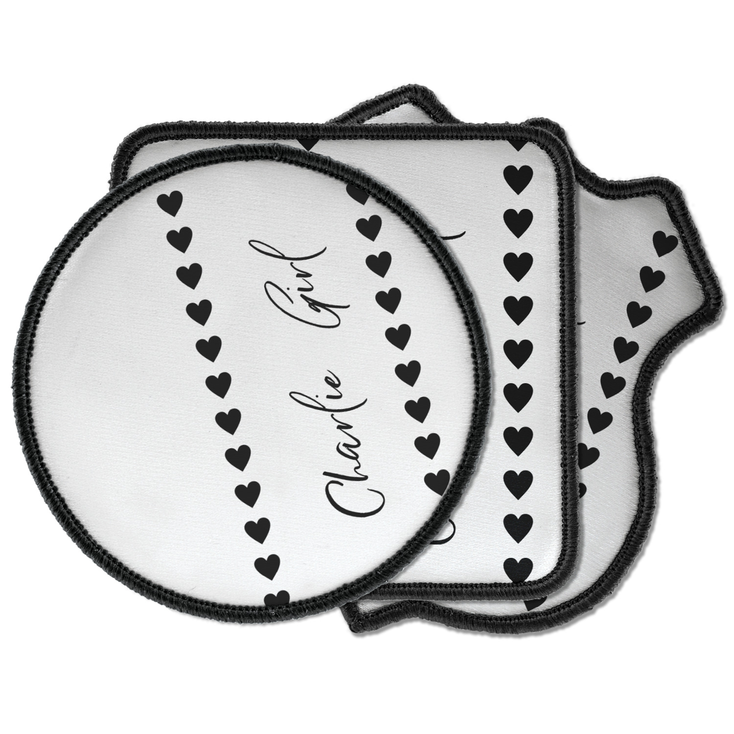 Our iron on patches are a fun addition to clothes such as, jeans, shirts, tee shirts, hats, backpacks, blankets etc. The patches are printed in full color, have a beautiful black embroidered border and an adhesive backing. Available in 7 different shapes and are printed in full color with any logo or any artwork, the possibilities are truly endless. You imagine it and we can make it!