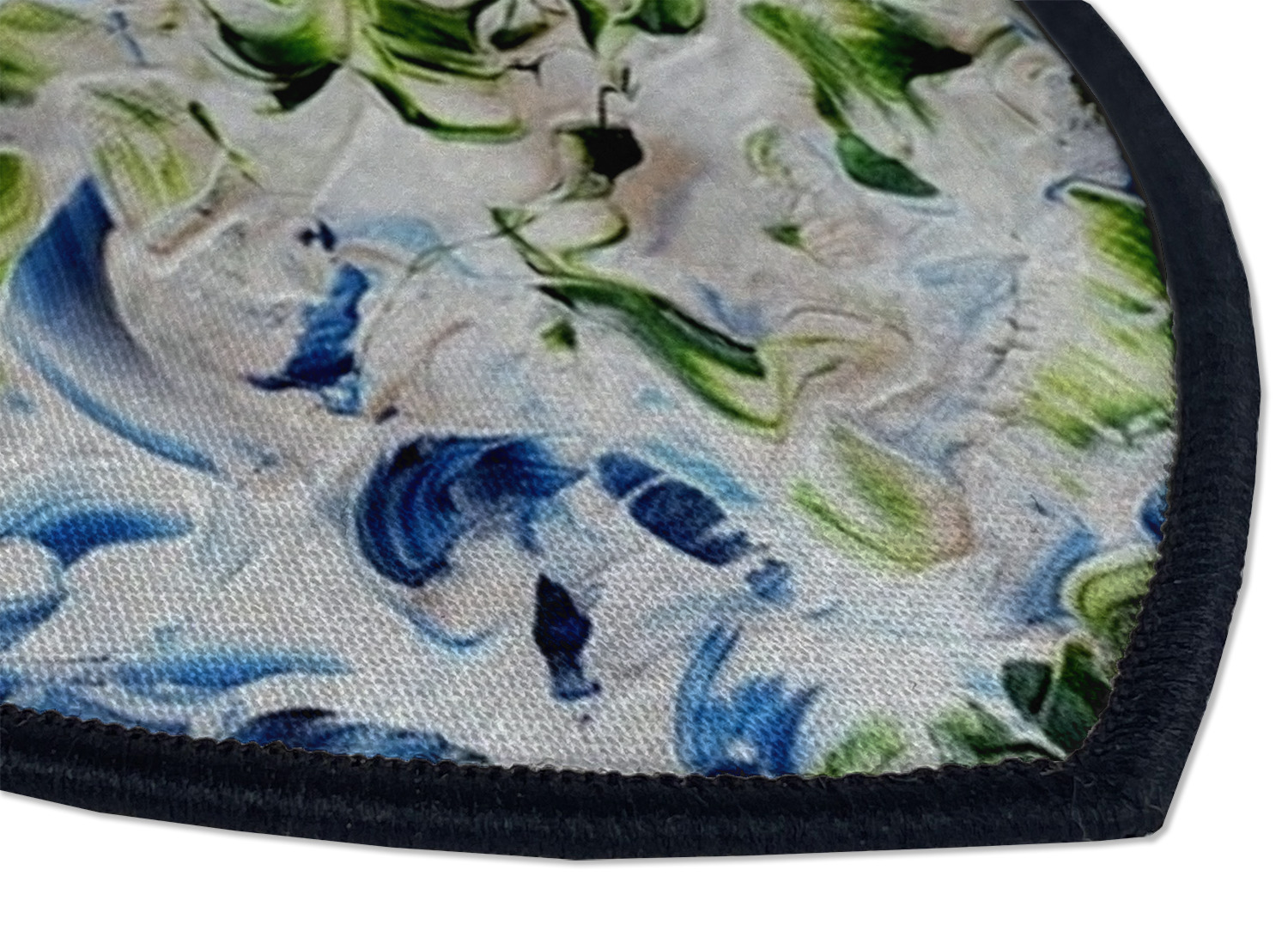 Our iron on patches are a fun addition to clothes such as, jeans, shirts, tee shirts, hats, backpacks, blankets etc. The patches are printed in full color, have a beautiful black embroidered border and an adhesive backing. Available in 7 different shapes and are printed in full color with any logo or any artwork, the possibilities are truly endless. You imagine it and we can make it!