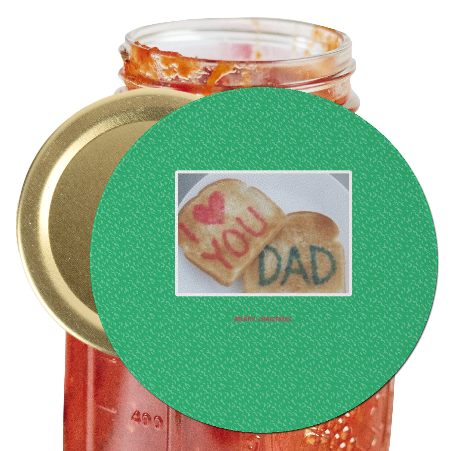 Made from rubber and a polyester top, these personalized jar openers serve as a functional addition to your kitchen counter-top. With its light weight and thin structure, these manual jar openers are straightforward and easy to use. The tool has a 5" diameter, and can therefore fit over most jars that have a diameter smaller than 4".