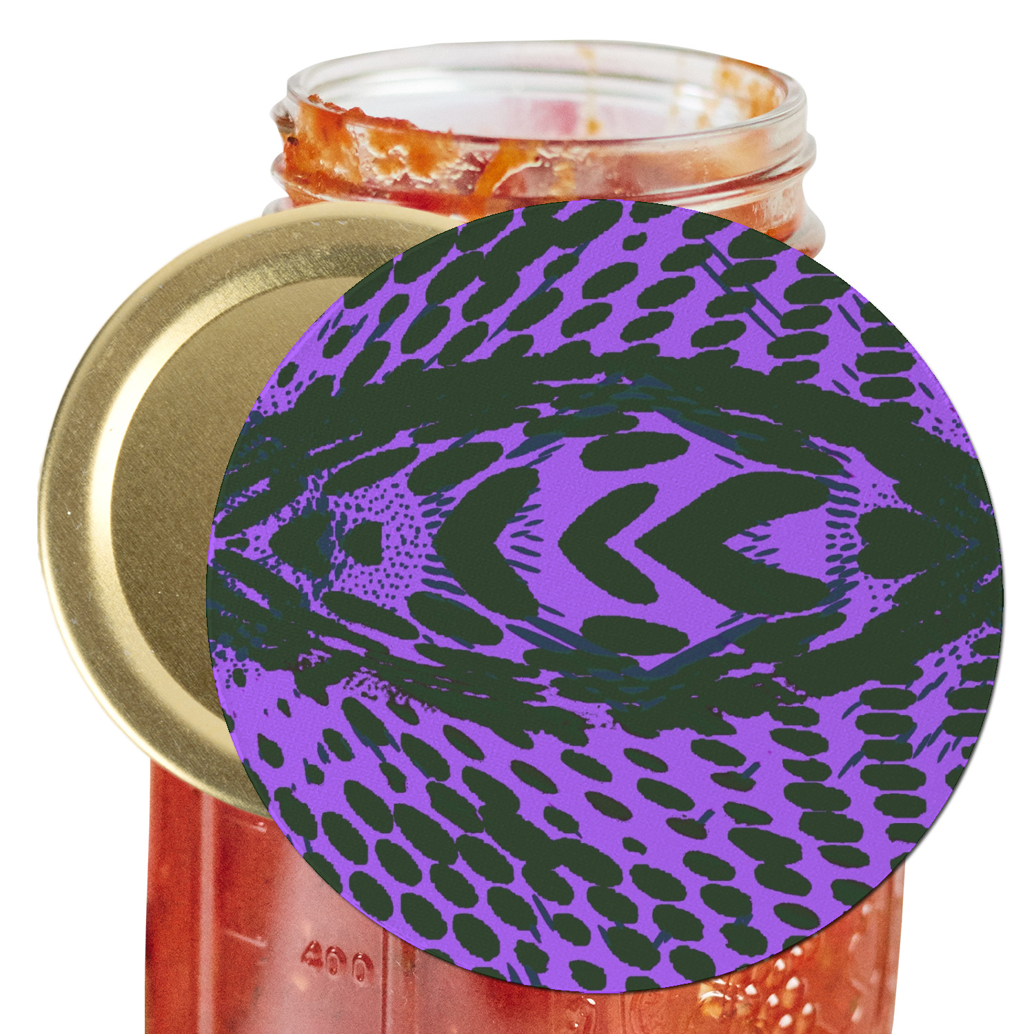 Made from rubber and a polyester top, these personalized jar openers serve as a functional addition to your kitchen counter-top. With its light weight and thin structure, these manual jar openers are straightforward and easy to use. The tool has a 5" diameter, and can therefore fit over most jars that have a diameter smaller than 4".